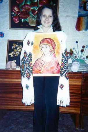 Чотириразова учасниця конкурсу і давня авторка «Кримської світлиці» та «Джерельця» Таня Полубко із Чернівців благословляє початок VI Міжнародного конкурсу імені Петра Яцика в Криму іконою Божої Матері, яку вона сама намалювала на склі і отримала за неї перше місце.