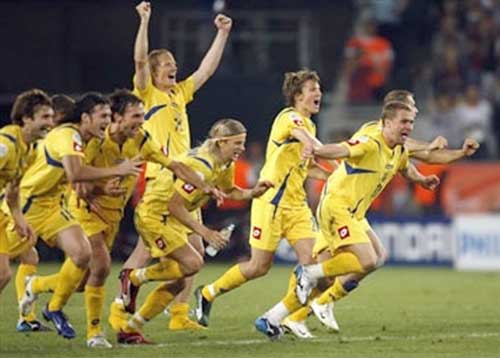 Минуло╖ п`ятниц╕ укра╖нська зб╕рна переграла зб╕рну Тун╕су з рахунком 1:0 (гол забив з пенальт╕ Андр╕й Шевченко) ╕ вийшла в 1/8 ф╕налу чемп╕онату св╕ту з футболу, що вже ╓ неабияким досягненням нашо╖ команди, яка вперше бере участь у св╕тов╕й футбольн╕й першост╕. Але ця рад╕сна под╕я безнад╕йно застар╕ла: у понед╕лок, 26 червня, наш╕ хлопц╕ здобули перемогу ще й над зб╕рною Швейцар╕╖ ╕ вийшли в 1/4 ф╕налу! Головний тренер зб╕рно╖ Укра╖ни Олег Блох╕н вважа╓, що обидв╕ команди - Укра╖на ╕ Швейцар╕я мали однаков╕ шанси на перемогу у матч╕ 1/8 ф╕налу ЧС-2006. «На пол╕ були дв╕ р╕вн╕ команди, як╕ грали приблизно в одному стил╕. Просто сьогодн╕ усп╕х виявився на нашому боц╕. ╤ неважливо, хто забив переможний м’яч, - змагалася вся команда», - заявив Олег Блох╕н на п╕сляматчев╕й прес-конференц╕╖, пов╕домля╓ Укр╕нформ з посиланням на сайт «Динамо» (Ки╖в). Укра╖нський тренер в╕дзначив напружений характер матчу, з╕знавшись, що по зак╕нченню додаткового часу п╕шов у роздягальню, оск╕льки «б╕льше не м╕г терп╕ти напруження». «Ц╕ 120 хвилин виявилися дуже важкими для мо╖х нерв╕в. Я сказав хлопцям, щоб вони сам╕ вир╕шували, кому бити. Щодо Шовковського, який узяв два пенальт╕, то в╕н ще раз дов╕в, що ма╓ зал╕зн╕ нерви», - сказав Олег Блох╕н. «Зараз я на сьомому неб╕ в╕д щастя, хоча можу сказати, що ми допустили чимало безглуздих помилок, кожна з яких могла обернутися голом. П╕сля матчу з Тун╕сом мен╕ довелося вислухати багато критичних зауважень з приводу нашо╖ тактики. Сьогодн╕ ми довели, що вм╕╓мо грати у футбол. У нас на думц╕ був т╕льки результат», - сказав Блох╕н. Щодо учасник╕в чвертьф╕налу в╕н заявив: «Вс╕ зб╕рн╕, як╕ вийшли в 1/4 ф╕налу, неймов╕рно хорош╕. ╤ ╕тал╕йц╕ - не виняток. Ця команда волод╕╓ чудовою обороною ╕ дуже небезпечна в контратаках. Нам буде дуже важко». Головний тренер зб╕рно╖ Швейцар╕╖ Коб╕ Кун зазначив: «Ми думали лише про перемогу ╕ грали т╕льки заради перемоги, а в результат╕ збира╓мо реч╕. За свою кар’╓ру я пережив немало прикрощ╕в. Доведеться змиритися ╕ з ц╕╓ю поразкою. У нас був дуже складний груповий етап. Але це футбол. Поразка, нехай нав╕ть по пенальт╕ - це все одно поразка. У всьому винн╕ нерви. Вранц╕ ми тренували пенальт╕, ╕ н╕хто не промахнувся. А тут таке...» * * * Президент Укра╖ни В╕ктор Ющенко в╕д ╕мен╕ м╕льйон╕в укра╖нських убол╕вальник╕в прив╕тав нац╕ональну зб╕рну з футболу з черговою перемогою на чемп╕онат╕ св╕ту ╕ виходом до 1/4 ф╕налу, пов╕домля╓ Укр╕нформ. В╕ктор Ющенко наголосив, що сво╓ю грою укра╖нськ╕ футбол╕сти продемонстрували всьому св╕тов╕, що вони добре волод╕ють тактикою гри ╕ майстерно захищають власн╕ ворота. В╕н подякував гравцям та тренерському штабу за справжн╓ свято, яке вони подарували сво╖м убол╕вальникам. За його словами, перемоги укра╖нсько╖ зб╕рно╖ на чемп╕онат╕ св╕ту - це прекрасний подарунок укра╖нцям до 15-╖ р╕чниц╕ Незалежност╕. Президент також в╕дзначив, що усп╕шна гра укра╖нсько╖ команди працю╓ на об’╓днання Укра╖ни ╕ вихову╓ патр╕отичн╕ почуття, адже в дн╕, коли гра╓ наша зб╕рна, «вбол╕вальники з синьо-жовтими прапорами - звичне явище для будь-якого укра╖нського м╕ста». Глава держави п╕дкреслив, що в╕н разом з╕ сво╓ю родиною, як ╕ м╕льйони ╕нших убол╕вальник╕в, до п╕зньо╖ ноч╕ сп