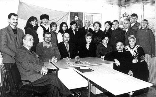 P. S. Скандалу не сталося - почитавши цього папера, парт╕я дала таки комп`ютера на приз. А всього за час проведення змагання редакц╕я вручила ╖х кримським школярам аж 14! Зда╓ться, у цьому «Св╕тлицю» ще н╕хто не перевершив - ╕ не т╕льки в Криму. Не скажете, чому? Бо це б╕льше н╕кому не треба?! На фото: Таким чисельним був колектив «Св╕тлиц╕» (╕ це ще не вс╕!) три роки тому... до затвердження урядом «Програми розвитку ╕ функц╕онування укра╖нсько╖ мови». Пост╕йн╕ читач╕ пам`ятають, що редакц╕я тод╕ розташовувалася не у трьох, як тепер, а в п`яти к╕мнатах на третьому поверс╕ артек╕всько╖ бази-готелю. А ще б╕льше, напевне, згадуються т╕ гучн╕ добр╕ справи, як╕ вершила газета: мовно-комп`ютерн╕, л╕тературн╕, п╕сенн╕ масов╕ конкурси для молод╕, для небайдужих, для св╕тлих душею. «Св╕тлиця» тод╕ виходила на 24-х стор╕нках, щотижня - з дитячим, молод╕жним та спортивним додатками. Ск╕льки тем, ск╕льки проблем охоплювала - газета справд╕ починала спинатися на ноги. Кому це все заважало?