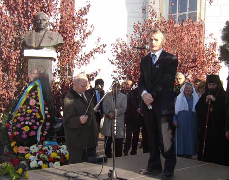 Но я думаю, что в ближайшее время в Крыму будет установлен памятник жертвам геноцида украинского народа. Сегодня мы в память о принявших мучительную голодную смерть наших согражданах возлагаем цветы у памятника великого борца за свободу и демократию, мужественного патриота Украины и верного друга крымскотатарского народа генерала Петра Григоренко.