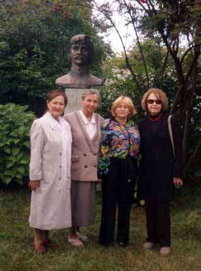 На фото: Богдана Шевчук (друга праворуч) з колежанками б╕ля погруддя ╤вана Миколайчука в с. Чортори╖.