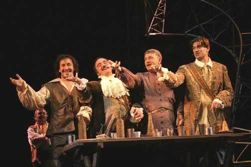 З 16 по 29 червня у прим╕щенн╕ Севастопольського академ╕чного рос╕йського драматичного театру ╕м. А. В. Луначарського проходять гастрол╕ Нац╕онального академ╕чного драматичного театру ╕м. ╤вана Франка. Вперше франк╕вц╕ зав╕тали з гастролями до Севастополя у 2000 роц╕. Зачарован╕ м╕стом та вдячним ╕нтел╕гентним глядачем, вони пооб╕цяли при╖здити сюди кожн╕ два роки, аби севастопольц╕ нав╕ть не встигали в╕двикнути в╕д столичних актор╕в. В╕дтод╕ при╖зд цього творчого колективу, попри вс╕ пол╕тичн╕ чи як╕сь ╕нш╕ негаразди, став традиц╕йним. Тут ╖х чекають, люблять, радують аншлагами. Взагал╕ до Криму франк╕вц╕ при╖здять вже всьоме. Гостювали вони ╕ в редакц╕╖ "Кримсько╖ св╕тлиц╕", пам’ятають про зустр╕ч ╕ нав╕ть шлють в╕тання головному редактору ╕ всьому редакц╕йному колективу. Нац╕ональний академ╕чний драматичний театр ╕мен╕ ╤. Франка був заснований у 1920 роц╕ видатним режисером, актором, театральним д╕ячем Гнатом Юрою. За б╕льш н╕ж в╕с╕м десятил╕ть в╕н по праву пос╕в одне з ч╕льних м╕сць в ╕стор╕╖ св╕тового театру. Видатн╕ майстри сцен╕чного мистецтва: режисери, сценографи, композитори, вважали за честь бути представленими на сцен╕, яка пам’ята╓: Амврос╕я Бучму, Натал╕ю Ужв╕й, Нонну Копержинську, Мар’яна Крушельницького тощо. Сьогодн╕ в репертуар╕ театру, очолюваному Богданом Ступкою, лише на основн╕й сцен╕ б╕льш н╕ж 30 вистав. Серед них твори ╤вана Франка ╕ Софокла, У╖льяма Шексп╕ра ╕ Шолом-Алейхема, Михайла Булгакова ╕ Миколи Гоголя, Федора Досто╓вського, ╤вана Котляревського, Бернарда Шоу, Бертольда Брехта й ╤вана Карпенка-Карого. Театр не залиша╓ поза увагою ц╕кавих драматург╕в сучасност╕. Так останн╕ми прем’╓рами сезону, що зак╕нчу╓ться, стали вистави за п’╓сами англ╕йського класика 20 стол╕ття Роберта Болта "В╕ват, королево!" та досить в╕домого сьогодн╕ у св╕т╕ французького драматурга Ер╕ка Емануеля Шм╕тта "Маленьк╕ подружн╕ злочини". Художн╕й кер╕вник Богдан Ступка, прагнучи розширити художню пал╕тру, запрошу╓ на постановки режисер╕в з д╕аметрально протилежними творчими методами з р╕зних театральних шк╕л. З театром сп╕впрацюють режисери з Польщ╕, Рос╕╖, Груз╕╖, Канади, Литви. П’ять рок╕в тому, з ╕н╕ц╕ативи Богдана Ступки, при театр╕ була створена експериментальна сцена Театр у фой╓, котра не лише набула популярност╕ серед глядач╕в, а й стала сво╓р╕дною лаборатор╕╓ю найсм╕лив╕ших, неординарних часто парадоксальних, але таких потр╕бних для театру нових художн╕х засоб╕в, режисерських р╕шень, драматург╕чних в╕дкритт╕в. У репертуар╕ Театру у фой╓ б╕льш н╕ж 10 роб╕т: ╕нсцен╕зац╕я новели ╤. Франка "Увертюра до побачення", першопрочитання в Укра╖н╕ п’╓си А. Стр╕нберга "Батько", вистава за п’╓сою Г. Кониського "Трагедокомед╕я о воскресен╕╖ мертвих", яка поставлена в ориг╕нал╕ - старослов’янською мовою, моновистава "Посаг кохання" Г. Маркеса, поема Дж. Байрона "Ка╖н", п’╓са Дж. Кромвелла "Прем’╓ра", "Зачарована Десна" О. Довженка, "Дредноути" ╢. Гришковця, "Сара Бернар - наперек╕р усьому" З. Хшановського, "Дв╕р Генр╕ха III" О. Дюма. Кожна з вистав - це створений митцями окремий св╕т, з лише йому притаманними законами, який, в той же час, явля╓ собою багатство ╕ пол╕фон╕ю мистецтва театру. Незвичн╕сть ╕ легк╕сть трансформац╕╖ сцен╕ч