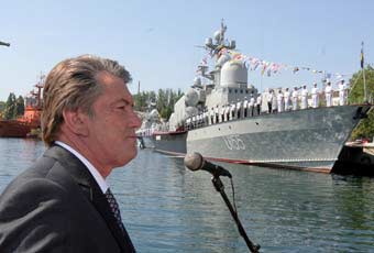 У Севастопол╕ в нед╕лю пройшли урочистост╕ з нагоди 15-╖ р╕чниц╕ В╕йськово-Морських Сил Укра╖ни. ╤ хоча формально день народження укра╖нського флоту припада╓ на 5 кв╕тня 1992 року, а в календарях на поточний р╕к святковим флотським днем позначене 1 серпня (через що у минулому числ╕ «КС» нав╕ть трапилася помилка, за що просимо вибачити. - Ред.), День ВМС Укра╖ни зг╕дно з президентським Указом в╕дзначають саме 1 липня. Ран╕ше укра╖нськ╕ моряки святкували разом ╕з рос╕йськими День ВМФ Рос╕╖, що припада╓ на останню нед╕лю липня. Тепер над Севастополем лунали укра╖нськ╕ в╕йськов╕ п╕сн╕ - тут удруге в╕дзначали окремий День ВМС Укра╖ни. В урочистих заходах взяв участь ╕ Президент Укра╖ни, Верховний Головнокомандувач Збройних Сил В╕ктор Ющенко. «Ваш╕ завдання ╕ ваш╕ проблеми н╕коли не будуть поза увагою держави!» – пооб╕цяв у в╕тальн╕й промов╕ В. Ющенко ╕ побажав укра╖нським морякам «чистих фарватер╕в та с╕м фут╕в п╕д к╕лем». Президент побував на кораблях укра╖нського флоту, вручив нагороди та ордери на квартири в╕йськовослужбовцям, а також оф╕церськ╕ кортики цьогор╕чним випускникам в╕йськово-морського ╕нституту. В╕таючи моряк╕в з╕ святом, В. Ющенко заявив, що Укра╖на повинна бути готовою швидко реагувати на вс╕ зовн╕шн╕ загрози, ╕ це ключове завдання, яке в╕н ставить перед кер╕вництвом Збройних Сил ╕, зокрема, ВМС Укра╖ни. Президент також пооб╕цяв, що як глава держави, як Верховний Головнокомандувач в╕н завжди дбатиме про належн╕ умови для служби моряк╕в ╕ про ╖хн╕й добробут. Справа п╕дтримки флоту – це справа загальнонац╕ональна, заявив Президент. В╕н закликав укра╖нське сусп╕льство, кожне м╕сто ╕ кожний рег╕он «продовжувати важливу допомогу в розбудов╕ нашого флоту». В. Ющенко п╕дкреслив, що Севастополь – головний форпост укра╖нських в╕йськово-морських сил, це м╕сто – сила ╕ слава нац╕онального флоту.