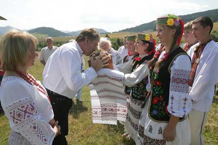 Президент Укра╖ни В╕ктор Ющенко разом ╕з родиною взяв участь у закритт╕ XVII М╕жнародного гуцульського фестивалю у м. Яремче (╤вано-Франк╕вська область). Президент сердечно прив╕тав ус╕х натхненник╕в та орган╕затор╕в фестивалю, пов╕домля╓ УКР╤НФОРМ з посиланням на прес-службу глави держави. "Сьогодн╕ ми ╓ св╕дками того, як поверта╓мося до свого кор╕ння, що нам зараз потр╕бно, як н╕коли", - зазначив В. Ющенко у сво╓му виступ╕. Президент також прив╕тав присутн╕х ╕з 220-р╕ччям м. Яремче. В╕н подякував Яремчанському м╕ському голов╕ Микол╕ Пал╕йчуку за збереження та в╕дновлення м╕ста ╕ вручив меров╕ державну нагороду. XVII М╕жнародний Гуцульський фестиваль проходив 27 - 29 липня. У ньому взяли участь пров╕дн╕ художн╕ колективи гуцульського рег╕ону Прикарпаття, Закарпатсько╖ та Черн╕вецько╖ областей, фольклорн╕ колективи з Польщ╕ та Румун╕╖. Перший М╕жнародний гуцульський фестиваль в╕дбувся 27 вересня 1991 року на полонин╕ "Зап╕док" Верховинського району, що ╓ традиц╕йним м╕сцем урочистих з╕брань гуцул╕в. Тод╕ було запалено фестивальну ватру, що дотепер склика╓ на святкове д╕йство численних представник╕в ц╕╓╖ етнограф╕чно╖ групи укра╖нц╕в. Проведення гуцульських фестивал╕в започаткувало товариство "Гуцульщина" задля в╕дродження, примноження матер╕ально╖ та духовно╖ гуцульсько╖ культури, м╕сцевих традиц╕й ╕ обряд╕в. Наступний фестиваль в╕дбудеться у м. Вижниця (Черн╕вецька область).