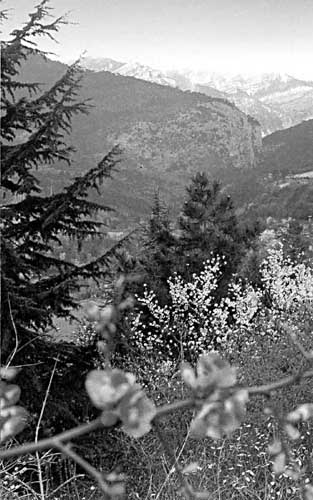 (Продовження. Поч. у № 4, 5). Продовжимо нашу мандрівку на Південий берег Криму. Дорога, залишивши зліва рукотворне озеро - Сімферопольське водосховище, прямує по долині річки Салгір. Цю найдовшу в Криму водну артерію (232 км) утворили дві невеличкі гірські річки - Ангара та Кизилкобінка, що злилися біля села Зарічного. На третьому кілометрі від Сімферополя, біля села Лозового, зліва від дороги - пам'ятник Л. М. Толстому. Тут, в Ескі-Орде, так називалось тоді Лозове, під час Кримської війни два місяці стояла перед відправкою до Севастополя артилерійська батарея, в якій служив підпоручик Лев Толстой. На шляху до Алушти є декілька широко відомих пам'ятників природи. В селі Зарічному від траси відходить дорога до печери Мармурової - одного з кримських чудес, а в трьох кілометрах на схід від села Перевального знаходяться не менш знамениті печери Кизил-Коба (Червоні печери). За селом Перевальним траса по долині річки Ангара піднімається в гори, на Ангарський перевал, і незабаром після того, як залишиться позаду міст через невеличку річку Курлюк-Су, з'явиться пам'ятник кримським партизанам - діабазова брила, що нагадує собою партизанську папаху. В роки німецько-фашистської окупації півострова гірський Крим був партизанським краєм. Ангарський перевал - один із перевалів через Головну гряду Кримських гір, найбільш висока точка траси - 752 м над рівнем моря. Справа від нього - Чатир-Даг, що здалеку нагадує собою величезне шатро, зліва - мальовничий обрій Північної та Південної Демерджі. Перевал - популярне місце зимового відпочинку. На схилах Чатир-Дагу прокладено гірськолижні траси, в погожі зимові дні сюди приїздить багато відпочиваючих та жителів Алушти, Сімферополя, інших міст - любителів покататися на лижах, санях. Кримські гори не схожі на інші, не дуже високі (найвища вершина - Роман-Кош - 1545 м над рівнем моря), але надзвичайно мальовничі. Вони, ніби величезні хвилі, що здійняли високо свої гребні та так і застигли. Трьома грядами гори простяглися з південного заходу на північний схід. Головна гряда бере свій початок біля Балаклави і вздовж побережжя майже 180-кілометровим ланцюгом пролягла до Феодосії (мис святого Луки). Вона має свої особливості - у неї не звичні гостроверхі вершини, а хвилясте плато. В Криму їх називають яйлами, в перекладі з кримськотатарської мови - літні пасовища. Яйли - це велетенські водозбиральні чаші, накопичувачі прісної води, основне джерело її. Вони дуже закарстовані, майже безлісі. А ось узбіччя їх покриті густими лісами. Гірський ліс зберігає джерела і захищає ґрунт, годує і служить домівкою для тварин та птахів, послуговує своєрідним філь-тром і збагачувачем атмосфери, велетенським накопичувальним резервуаром чистого, насиченого фітонцидами повітря. Гірський ліс формує той особливий лікувальний клімат, яким так славиться Південний берег Криму. На півострові близько 250 видів ендемічних дикорослих рослин, тобто таких, що ростуть лише в Криму. Багато з рідкісних рослин, як і тварин, занесено в Червону книгу. Збереженню їх, а також ландшафтних пам'ятників сприяє створення спеціальних територій, які знаходяться під охороною держави. Серед них найбільший в Україні Кримський державний природний заповідник, територія якого нараховує 44 тисячі гектарів. Всього ж заповідні території займають майже 6 процентів площі півост