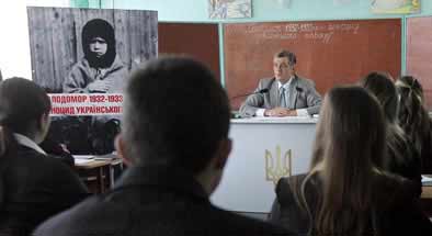 ПРЕЗИДЕНТ ЗАКЛИКА╢ ВС╤Х УКРА╥НЦ╤В ПРИ╢ДНАТИСЯ ДО ЗАГАЛЬНОНАЦ╤ОНАЛЬНО╥ АКЦ╤╥ "ЗАПАЛИ СВ╤ЧКУ" НА ЗНАК ПАМ’ЯТ╤ ╤ ВШАНУВАННЯ ЖЕРТВ ВЕЛИКОГО ГОЛОДОМОРУ 1932 - 1933 РОК╤В В УКРА╥Н╤ "Голодомор 1932-1933 рок╕в - геноцид укра╖нського народу" - тема в╕дкритого уроку пам’ят╕, який пров╕в 20 листопада Президент Укра╖ни В╕ктор Ющенко у Поп╕льнянськ╕й г╕мназ╕╖ № 1 на Житомирщин╕. "75 рок╕в тому ми пережили катастрофу, яка могла зупинити життя всього нашого народу", - наголосив В╕ктор Ющенко п╕д час уроку. За словами Президента, у пер╕од колектив╕зац╕╖ зазнали репрес╕й ╕ пересл╕дувань близько 20 м╕льйон╕в укра╖нських хл╕бороб╕в. Зокрема, 352 тисяч╕ найб╕льш заможних, а в╕дтак працьовитих селянських родин було примусово вивезено з р╕дно╖ земл╕. У 1932-1933 роках ми втратили в╕д 7 до 10 м╕льйон╕в укра╖нц╕в, сказав в╕н. Звертаючись до учн╕в, В. Ющенко наголосив: "Наша православна в╕ра кличе нас до моральних ц╕нностей. Наш моральний обов’язок поляга╓ в тому, що ми повинн╕ вшанувати кожну жертву. Бо це жертва уб╕╓нна". Тому, переконаний Глава держави, перед нин╕шн╕м покол╕нням сто╖ть надзвичайно важливе завдання - вивчити пер╕од великого Голоду, вивчити, ск╕льки людей померло. "Нам потр╕бно почати з кожно╖ родини, кожного села, м╕ста. Ми повинн╕ досконало знати ╕стор╕ю цього пер╕оду", - зазначив Президент. В╕н нагадав, що цей тиждень ╓ поминальним - 24 листопада буде проведено загальнонац╕ональну акц╕ю "Запали св╕чку". В╕ктор Ющенко закликав ус╕х при╓днатися до ц╕╓╖ акц╕╖ ╕ на знак поминання та вшанування жертв Голодомору поставити у кожн╕й родин╕ запалену св╕чку. "Це буде св╕дченням пробудження нашо╖ загублено╖ нац╕онально╖ пам’ят╕", - п╕дкреслив Президент. На переконання В. Ющенка, ми повинн╕ вшанувати пам’ять жертв великого Голодомору - створити Нац╕ональний музей пам’ят╕ не т╕льки у Ки╓в╕, а й у кожному сел╕, м╕ст╕, написати Книгу Пам’ят╕, створити ф╕льм.