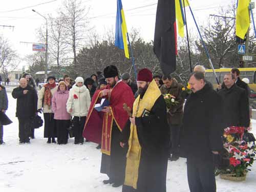 ╢пископ С╕мферопольський ╕ Кримський Климент (УПЦ КП) ╕ отець В╕ктор (УГКЦ) в╕дслужили панахиду за загиблими у т╕ буремн╕ дн╕ 90 рок╕в тому героями-студентами. П╕сля сп╕льно╖ молитви до п╕дн╕жжя пам’ятника представниками р╕зних пол╕тичних парт╕й та громадських орган╕зац╕й державницького спрямування були покладен╕ кв╕ти.