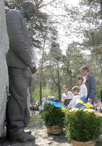 В╕ктор ЮЩЕНКО: «ЗЛОЧИННА КОМУН╤СТИЧНА ВЛАДА ЖОРСТОКО ╤ Ц╤ЛЕСПРЯМОВАНО НИЩИЛА ЦВ╤Т НАШО╥ НАЦ╤╥...» «Протистояти тотал╕таризмов╕ та його рецидивам може т╕льки згуртоване демократичне сусп╕льство, яке засво╖ло траг╕чн╕ уроки сво╓╖ ╕стор╕╖», - таке переконання висловив Глава держави, виступаючи на територ╕╖ Нац╕онального ╕сторико-мемор╕ального запов╕дника «Бик╕внянськ╕ могили» у День пам’ят╕ жертв пол╕тичних репрес╕й 18 травня. Про це УКР╤НФОРМу пов╕домили у прес-служб╕ Глави держави. У День пам’ят╕ жертв пол╕тичних репрес╕й уперше по вс╕й Укра╖н╕ приспущено державн╕ прапори, скорботн╕ заходи в╕дбувалися в ус╕х рег╕онах. «Сьогодн╕ ми вшанову╓мо пам’ять ус╕х незл╕ченних жертв «червоного колеса», що прокотилося Укра╖ною у XX стол╕тт╕, говоримо про злочини не лише Стал╕на, а й усього комун╕стичного режиму», - сказав Президент. В╕н нагадав, що у Бик╕внянському л╕с╕ похован╕ понад 100 тисяч наших сп╕вв╕тчизник╕в, розстр╕ляних та замордованих у кат╕внях НКВС у 30 - 40-х роках минулого стол╕ття. М╕льйони ╖х покояться у безл╕ч╕ ╕нших без╕менних могил. В╕ктор Ющенко заявив, що уже настав час на повний голос говорити про винуватц╕в репрес╕й та тортур, настав час ╖х публ╕чного засудження. «Тому я з розум╕нням ставлюся до громадських ╕н╕ц╕атив щодо цього», - сказав Президент. В╕н нагадав, що нин╕ в╕дкриваються арх╕ви, друкуються твори репресованих укра╖нських письменник╕в, досл╕дницьк╕ та науков╕ прац╕, трива╓ зб╕р св╕дчень. Водночас, зауважив Глава держави, на територ╕╖ Укра╖ни ще й нин╕ бовван╕ють тисяч╕ пам’ятник╕в та ╕нших символ╕в, присвячених апологетам комун╕зму, зокрема, й орган╕заторам репрес╕й. Б╕льше того, сьогодн╕ ми ╓ св╕дками спроб в╕двертого реваншу прокомун╕стичних та про╕мперських сил: в Укра╖н╕ вже непоодинок╕ випадки нахабно╖ наруги над нашими ╕сторичними пам’ятниками та державними символами. «Влада та сусп╕льство мають покласти край цим ганебним явищам», - вважа╓ Президент. В╕н пов╕домив, що за його дорученням готу╓ться проект Закону, покликаний розпочати реальний процес л╕кв╕дац╕╖ символ╕в тотал╕таризму та комун╕стичного режиму в Укра╖н╕. В╕н буде внесений до Верховно╖ Ради як нев╕дкладний. Глава держави також наполягатиме на прийнятт╕ парламентом внесених ним самим законопроект╕в про правовий статус борц╕в за незалежн╕сть Укра╖ни та крим╕нальну в╕дпов╕дальн╕сть за заперечення Голодомору ╕ Голокосту. За словами Президента, тотал╕тарна влада намагалася вичавити укра╖нську нац╕ональну ╕дентичн╕сть та ╕сторичну пам’ять. «У повн╕й м╕р╕ в╕дродити ╖х - наш святий обов’язок як перед м╕льйонами жертв терору, так ╕ перед наступними покол╕ннями укра╖нц╕в», - сказав в╕н. У сво╓му виступ╕ Глава держави дав оц╕нку комун╕стичному режиму, який ╕снував в Укра╖н╕ понад 70 рок╕в. «Злочинна комун╕стична влада, для яко╖ н╕чого не значили не т╕льки людськ╕ права, а й сама людина, жорстоко ╕ ц╕леспрямовано нищила цв╕т нашо╖ нац╕╖. Кожен, хто вир╕знявся талантом, в чи╖й душ╕ гор╕в живий вогонь, першим потрапляв п╕д налагоджену машину репрес╕й. Любов до Укра╖ни, до р╕дного народу стала в т╕ часи найтяжчим ╕з злочин╕в», - сказав Президент. За його словами, репрес╕╖ проти укра╖нц╕в почалися ще до 1930-х рок╕в ╕ продовжува