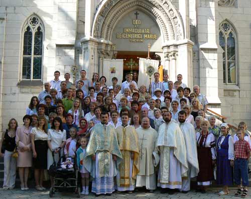 25 травня в римо-католицькому храм╕ Непорочного зачаття Пречисто╖ Д╕ви Мар╕╖ в╕дбулась святкова л╕тург╕я з нагоди храмового свята ялтинсько╖ УГКЦ Перенесення мощей Св. Миколая Чудотворця, арх╕╓пископа Мирл╕к╕йського. У час╕ л╕тург╕я зб╕глась ╕з закликом Патр╕арха Любомира Гузара до в╕руючих Укра╖нсько╖ Греко-Католицько╖ Церкви молитись за примирення в Укра╖н╕. Богослуж╕ння проводили священики з р╕зних м╕ст Криму – о. Богдан Костецький, парох громад Покрови Пресвято╖ Богородиц╕ та Пресвято╖ Тр╕йц╕ (╢впатор╕я), о. В╕ктор Гуменюк – громада Св. священномученика Йосафата (С╕мферополь), о. Микола Квич – парох громад Успення Пресвято╖ Богородиц╕, Св. апостола Андр╕я Первозванного, Св. Васил╕я Великого та капелан ВМС ЗС Укра╖ни (Севастополь) ╕ ялтинц╕ – протопресв╕тер о. ╤гор Гаврил╕в ╕ римо-католик о. Юр╕й Дорог╕н, монах ордену Св. Дом╕н╕ка. У такий святковий день Церква над╕ля╓ в╕руючих особливим благословенням ╕ люди отримують повне прощення гр╕х╕в п╕сля спов╕д╕ ╕ святого причастя – саме тому багато прихожан ╕ прочан з С╕мферополя, Севастополя, ╢впатор╕╖, Алушти та ╕нших м╕ст спов╕дались священикам ╕ причащались. Отець Богдан у пропов╕д╕ розпов╕в про особливост╕ вшанування Святого Миколая Чудотворця ╕ в╕дзначив, що в╕н був багачем, який потрапив у Царство Небесне, бо ╕з сво╖м багатством в╕н поводився не як ╕з сво╖м майном, а таким, яке послане Господом. У пропов╕д╕ о. ╤гор сердечно прив╕тав дорогу громаду, вс╕х параф╕ян ╕ прихожан, вс╕х присутн╕х гостей. В╕н в╕дзначив, що участь у богослуж╕нн╕ зроста╓ ╕ метою ялтинсько╖ громади залиша╓ться отримання м╕сця для буд╕вництва храму. Великою православною традиц╕╓ю ╓ освячення води п╕д час великих свят, ╕ вона ма╓ таку ж силу, як ╕ вода п╕д час Водохрещ╕, ╕ священики сп╕льно провели ╕ цей обряд. Свято для в╕руючих душ в╕дбулось зг╕дно з православними традиц╕ями ╕ вс╕ його учасники сфотографувались на згадку про цю неперес╕чну под╕ю. П╕сля цього протопресв╕тер о. ╤гор Гаврил╕в з Ялти коротко прокоментував цю под╕ю для нашо╖ газети: – Найважлив╕ше в свят╕ те, що вс╕ громади могли з╕братись на сп╕льну молитву ╕ змогли ще раз зустр╕тись ╕ ще раз засв╕дчити ╓дн╕сть церкви, ╓дн╕сть народу, те, що укра╖нц╕в у Криму ╓ немало ╕ скр╕зь по вс╕х м╕стах ╕ селах. Ще важливо те, що л╕тург╕я з╕брала не т╕льки в╕руючих греко-католик╕в, але й в╕руючих ╕нших конфес╕й – Ки╖вського Патр╕архату, Автокефально╖ Православно╖ Церкви, Римо-Католицько╖ Церкви. Вс╕ в╕рн╕ молились у римо-католицькому храм╕. ╤ це ╓ чудо, бо ми бачимо ╓дн╕сть церкви, що ми вс╕ ╓ одне у Христ╕, ╓дине м╕стичне т╕ло Христове. – Чи ╕сну╓ практика сп╕льного богослуж╕ння поза межами Криму? – Мабуть, нема╓ тако╖ практики, бо я вже не вперше переконуюсь в тому, що ╓дна╓ людей б╕да, тривога, пересл╕дування укра╖нц╕в – ╓ воно в Криму, на жаль. ╤ укра╖нц╕ в цих сп╕льних молитвах просять у Бога вол╕, ╓дност╕, добробуту, миру, злагоди. – Чи наближа╓ така практика до ╓дино╖ пом╕сно╖ церкви в Укра╖н╕? – Наближа╓, безперечно. Можу стверджувати, що м╕ж простими в╕руючими така ╓дн╕сть вже ╕сну╓. Очевидно, нема╓ конечного порозум╕ння м╕ж ╕╓рархами наших церков ╕ вир╕шення цього питання ╕╓рарх╕чними установами. А м╕ж людьми ╕ м╕ж свя