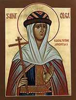 КНЯГИНЯ КИ╥ВСЬКА 24 липня - День свято╖ р╕вноапостольно╖ Ольги «У грек╕в ми взяли ╢вангел╕╓ ╕ перекази, але вдач╕ В╕зант╕╖ н╕коли не були вдачами Ки╓ва…» - писав Пушк╕н Чаада╓ву 19 жовтня 1836 року. Та мало хто зна╓, що незалежний шлях нашо╖ православно╖ кра╖ни у подальш╕й св╕тов╕й ╕стор╕╖ визначив виб╕р, зроблений саме святою княгинею Ольгою. За багато рок╕в свого правл╕ння вона заслужила звання «наймудр╕шо╖ з людей». Одн╕╓ю з перших на Рус╕ прийняла християнство, ╕, безсумн╕вно, згодом це вплинуло на виб╕р ╖╖ онука, князя Володимира, який прийняв його сх╕дну г╕лку - православ’я - для всього нашого народу. Абсолютно достов╕рно говорити про походження княгин╕ Ольги важко. З л╕топису в╕домо, що ╤гор прив╕в соб╕ дружину з Плескова 903 року. З приводу цього «Плескова» ╕снують р╕зн╕ думки. Одн╕ вважають, що Ольга родом з села Вибути п╕д Псковом, з династ╕╖ княз╕в ╤зборських. ╤нш╕ впевнен╕, що «Плесков» - болгарське м╕сто Пл╕скувот. Так ╕ ╕м’я у княгин╕ варязьке. Справа в тому, що скандинавське «Ольга» у Дан╕╖ та Швец╕╖ ╕сну╓ ╕ до цього дня ╕ звучить як «Хельга». Однак, напевно, нема╓ сенсу впадати у складн╕, не безперечн╕ ╕, по сут╕, безглузд╕ досл╕дження про слов’янське або варязьке походження р╕вноапостольно╖ княгин╕. Головне, що Ольга - надзвичайно ц╕льна особист╕сть, справд╕ велика ж╕нка, яка силою обставин стала на чол╕ величезно╖, держави, яка ще формувалася, виявилася г╕дною т╕╓╖ ╕сторично╖ дол╕, що ╖й випала. Вона ув╕йшла в ╕стор╕ю як великий творець державного життя ╕ культури Ки╖всько╖ Рус╕ ╕ вважа╓ться одн╕╓ю з перших святих на Рус╕. За те, що несла ╓вангельське св╕тло древньоруським племенам, як╕ перебували в темряв╕ язичництва, пропов╕дуючи Христа вз╕рцем власного хрещення, за яким п╕шло багато людей, Церква канон╕зувала княгиню не лише як святу, а й р╕вноапостольну (апостол - посланець Христа для пропов╕д╕ ╢вангел╕я). 903 р. Ольга стала дружиною Великого князя Ки╖вського ╤горя. 945 року, д╕знавшись про смерть чолов╕ка, взяла кермо влади кра╖ною у сво╖ руки, оск╕льки ╖хн╕й син ╕ законний спадко╓мець Святослав був ще дуже малим. Але й п╕зн╕ше, коли в╕н п╕др╕с, то ц╕кавився лише в╕йськовими походами, а управл╕ння землями, як ╕ ран╕ше, було в руках велико╖ княгин╕ до само╖ ╖╖ смерт╕. Початок правл╕ння Ольги був затьмарений варварськими, справд╕ середньов╕чними актами помсти древлянам за загибель чолов╕ка. Спочатку вона вел╕ла закопати живими в землю древлянських посл╕в, як╕ при╖хали сватати ╖╖ за свого князя. А двох ╕з них спалила в лазн╕. За допомогою диявольських хитрощ╕в знищила столицю древлян, м╕сто ╤скоростень. Сл╕д сказати, що ╖╖ власна дружина ц╕ вчинки ц╕лком схвалила. Одне з головних д╕янь княгин╕ Ольги - встановлення першо╖ на Рус╕ системи збору данини (податк╕в). Нею було запроваджено «устави» ╕ «уроки» - пост╕йн╕ величини податк╕в. Серед фресок собору св. Соф╕╖ у Ки╓в╕ ╓ зображення свято╖ Ольги, коли вона розмовля╓ з ╕мператором Костянтином VII Багрянородним. 954 року з метою рел╕г╕йного паломництва ╕ дипломатично╖ м╕с╕╖ княгиня вирушила у Царград, де з пошаною була прийнята ╕мператором Костянтином. ╥╖ вразила велич християнських храм╕в ╕ з╕браних у них святинь. Та╖нство хрещення над нею зд╕йснив Патр╕арх Констан