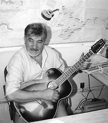 м. Львів. Шеф-редактор "Світлиці", голова Всеукраїнського товариства "Просвіта" Павло Мовчан з гітарою від фірми "Реноме".