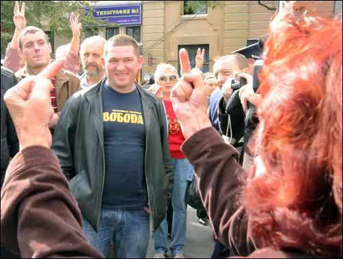 На збори громадян з метою створення ╕н╕ц╕ативно╖ групи з п╕дготовки Всеукра╖нського референдуму щодо зм╕н Автономного статусу АРК та особливого статусу м. Севастополя я прийшла, зг╕дно з оголошенням, на 12.30 28 вересня до Будинку оф╕цер╕в. Не думала, що на мене чекатиме такий величезний натовп… Та все з прапорами. Переважно соц╕ал╕стично╖ ╕ комун╕стично╖ парт╕й та парт╕╖ «Союз». Були й гасла типу «Крымчане, защитите свою конституцию!» та «Неофашистским холуям не место при власти в Украине!» (╕ п╕дпис – «комун╕сти»). Ну, це явно не про мене, по-перше, я н╕коли в холуях не ходила, а по-друге, до влади мене не запрошували, та ╕ сама не маю звички нав’язувати свою волю. Тож, це явно готувалася зустр╕ч ╕н╕ц╕ативн╕й груп╕, яка, п╕сля молитви в укра╖нськ╕й церкв╕, десь перебувала в дороз╕ до к╕нцево╖ точки. Але ж╕ночки були рад╕ ╕ мен╕, почали вимагати в мене документи, а оск╕льки я не мала таких, як у них, з╕ словом «русский», то на мою голову посипалися доб╕рн╕ «компл╕менти», як╕ виховання не дозволя╓ мен╕ тут повторити, ╕ взагал╕ под╕бний лексикон припустимий х╕ба що у психушц╕ чи на зон╕. Тим часом, як з’ясувалося, кульм╕нац╕йн╕ под╕╖ розгорнулися на сус╕дн╕й вулиц╕, куди прискореним кроком я попрямувала, в╕дчуваючи небезпеку. Тут переважали прапори прогресивно╖ соц╕ал╕стично╖ парт╕╖ та комун╕ст╕в. Цими кийками та розгнузданою лайкою, здавалося, гнали м╕стом тих, хто з╕брався для формування ╕н╕ц╕ативно╖ групи, що спод╕валася «опустити» Крим до р╕вня звичайно╖ област╕. А в╕н же незвичайний, це - «перлина!» ╤ люди тут надзвичайно доброзичлив╕ й винах╕длив╕ – поки просто неба в╕дбувалися збори, задля яких ╕ при╖хали укра╖нц╕ з найб╕льших м╕ст Криму, таких, як ╢впатор╕я, Ялта, Керч, «нещасн╕» пенс╕онери через спини м╕л╕ц╕╖ поливали ╖х з пакетик╕в кеф╕ром. ╤, зда╓ться, не пропустили н╕кого. - Нарешт╕ я таки переконався, що у нас нема╓ держави, - сказав один ╕з при╖жджих, маючи на уваз╕ те, що м╕л╕ц╕я не забезпечила укра╖нськ╕й громад╕ нормально╖ роботи. Вт╕м страж╕ порядку таки «конвоювали» учасник╕в збор╕в знов до церкви, аж поки т╕ не зм╕шалися з ринковим натовпом. Але все це не зашкодило представникам ╕ приб╕чникам Кримсько╖ республ╕кансько╖ орган╕зац╕╖ ВО «Свобода» створити ╕н╕ц╕ативну групу з п╕дготовки ╕ проведення референдуму щодо вищезгаданих питань. Вже наступного дня в╕дпов╕дн╕ документи мали бути передан╕ кримськ╕й влад╕. А того самого дня – з щотижнево╖ передач╕ ДТРК «Крим», присвячено╖ д╕яльност╕ кримських комун╕ст╕в, я дов╕далась в╕д ╖хньо╖ членкин╕, м╕н╕стра ╕ депутата ВР АРК Тетяни ╢жово╖ багато ц╕кавого. Звичайно ж, вона прокоментувала ╕ тогоденн╕ под╕╖, в яких брала участь не напряму, а як ╕дейний л╕дер. «Мы умеем встречать и друзей, и врагов: тухлые яйца, помидоры - выгнали этих наглецов». Справлялося враження, що йшлося не про таких самих, до реч╕, «неозбро╓них» кримчан, а про туземних завойовник╕в. Тетяна ╢жова, посм╕хаючись звисока, допов╕ла, що «мы в Крыму живем, как хотим» ╕ в парламент╕ д╕йшли р╕шення, що на вказ╕вки з Ки╓ва, як╕ стосуються мови, взагал╕ не сл╕д звертати увагу. Бо ось вона сама, наприклад, була колись вчителькою укра╖нсько╖ мови, а ╖╖ д╕ти вивчали укра╖нську класику за шк╕льною програмою в рос╕йсько