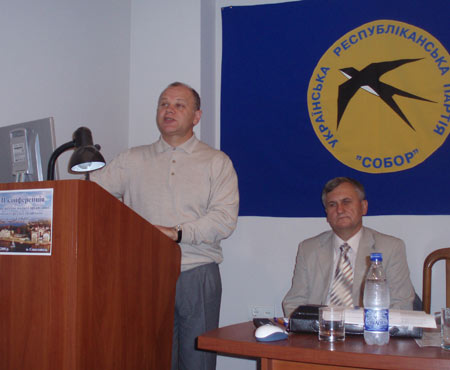 Нещодавно в╕дбулася VII конференц╕я Севастопольсько╖ м╕сько╖ орган╕зац╕╖ УРП «Собор». Б╕льше п╕всотн╕ делегат╕в, серед яких був г╕сть з╕ столиц╕ - член ЦР УРП «Собор», доктор економ╕чних наук Михайло Довбенко, кер╕вник Кримсько╖ орган╕зац╕╖ Владислав ╢рмаков, представники молод╕жних та укра╖нських нац╕онально-демократичних орган╕зац╕й м╕ста, вислухали зв╕тну допов╕дь голови СМО УРП «Собор» В╕ктора Бурди про поточну пол╕тичну ситуац╕ю та п╕дсумки роботи парт╕╖. Л╕дер собор╕вц╕в в╕дзначив активну роботу осередку у виборчих перегонах у 2007 роц╕, перерахував пол╕тичн╕, культурн╕ та осв╕тн╕ акц╕╖, в яких брали участь парт╕йц╕: „Запали св╕чку”, присвячену трагед╕╖ голодомору 1932-1933 рок╕в, спонсорську допомогу у проведенн╕ конкурсу учн╕вських та студентських роб╕т в УК╤Ц, присвячених 100-р╕ччю ╤вана Багряного та М╕жнародного конкурсу знавц╕в укра╖нсько╖ мови ╕мен╕ Петра Яцика. Члени УРП «Собор» сп╕впрацювали з громадськими орган╕зац╕ями, заснували ГО „Соборн╕сть Укра╖ни” ╕м. Б. Хмельницького, провели акц╕ю «За краще життя в гуртожитках», п╕дтримали Укра╖нську Православну церкву Ки╖вського Патр╕архату, взяли активну участь у всеукра╖нських заходах щодо святкування 100-р╕ччя Романа Шухевича. Допов╕дь проводилась з допомогою мультимед╕йного комп’ютерного обладнання. За словами В╕ктора Бурди, к╕льк╕сть член╕в парт╕йного осередку зросла з 14 чолов╕к у 2001 роц╕ до майже 3000. До структури парт╕╖ також входить ”Укра╖нський Молод╕жний Собор”, який ╕сну╓ з 2002 року, ╕ членами якого, в основному, ╓ студенти севастопольських вуз╕в. Ще був урочистий прийом у члени парт╕╖, вручення грамот ╕ подяк членам парт╕╖. Обран╕ делегатами презид╕я, секретар╕ат, мандатна, л╕чильна та редакц╕йна ком╕с╕╖ провели всю необх╕дну роботу з обрання кер╕вництва парт╕йного м╕ського осередку та вибор╕в делегат╕в ХVII з’╖зду УРП «Собор». Автор допису на великому екран╕ презентував учасникам конференц╕╖ ╕ гостям стор╕нку севастопольського «Собору» в Iнтернет╕, яка була створена разом ╕з його кер╕вництвом. Зараз за адресою http://sobor.sebastopol.ua можна ознайомитись з д╕яльн╕стю парт╕╖, документами, статтями, фотограф╕ями у галере╖. Стежки з сайту ведуть не лише на парт╕йн╕ стор╕нки, а й до нашо╖ газети. Конференц╕я переобрала головою СМО УРП «Собор» В╕ктора Бурду.