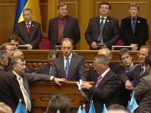 Народн╕ депутати Укра╖ни 233 голосами ухвалили 12 листопада постанову про в╕дкликання Арсен╕я Яценюка з посади Голови Верховно╖ Ради в╕дпов╕дно до подано╖ ним заяви, пов╕домля╓ УКР╤НФОРМ. За в╕дпов╕дне р╕шення проголосували 175 парламентар╕╖в ╕з фракц╕╖ Парт╕╖ рег╕он╕в, 27 - КПУ, 20 - Блоку Литвина, 10 - з НУ-НС та один ╕з БЮТ. П╕сля проведення голосування головуючий на зас╕данн╕ перший заступник Голови ВР Олександр Лавринович оголосив перерву в зас╕данн╕. * * * Головна в╕дпов╕дальн╕сть за в╕дставку з посади Голови ВР Арсен╕я Яценюка, що в╕дбулася сьогодн╕, лежить на Президентов╕ Укра╖ни. Таку заяву зробила 12 листопада перед журнал╕стами, повернувшись з парламенту до Будинку уряду, Прем’╓р-м╕н╕стр Укра╖ни Юл╕я Тимошенко. «Без прямого доручення Президента такого зв╕льнення в╕дбутися не могло. ╤ не треба шукати якихось слюсар╕в (в еф╕р╕, щоправда, прозвучало сл╓сар╕в - Ред.) та сантехн╕к╕в у Секретар╕ат╕ Президента. Безпосередньо в╕дпов╕дальн╕сть за це несе особисто Президент», - заявила вона. Юл╕я Тимошенко п╕дкреслила, що зв╕льнення Арсен╕я Яценюка в╕дбулося за участю голос╕в велико╖ частини «Нашо╖ Укра╖ни», яка контролю╓ться Президентом. На думку глави уряду, це робилося для того, щоб в╕дкрити шлях до формування нового формату коал╕ц╕╖. «Це шлях, яким хоче Президент пройти для переформатування коал╕ц╕╖ та проведення дострокових вибор╕в», - зазначила Прем’╓р-м╕н╕стр. Водночас, за словами Юл╕╖ Тимошенко, в╕дставка з посади сп╕кера - людини, обрано╖ голосами в╕д демократично╖ коал╕ц╕╖, фактично ╓ сутт╓вою загрозою для демократичного розвитку. * * * Прем’╓р-м╕н╕стр Укра╖ни Юл╕я Тимошенко на бриф╕нгу в Кабм╕н╕ у зв’язку з в╕дставкою Арсен╕я Яценюка з посади Голови ВР заявила про готовн╕сть в╕дновити демократичну коал╕ц╕ю у склад╕ БЮТ та «НУ-НС» або ж у склад╕ БЮТ, «НУ-НС» та Блоку Литвина. «Ми спробу╓мо на баз╕ БЮТ та «НУ-НС», але вже без зрадник╕в, в╕дновити демократичну коал╕ц╕ю. Ми проведемо вс╕ необх╕дн╕ переговори, щоб до ц╕╓╖ коал╕ц╕╖ долучився також Блок Литвина», - п╕дкреслила Прем’╓р-м╕н╕стр. * * * Р╕шення Верховно╖ Ради Укра╖ни про в╕дставку голови парламенту Арсен╕я Яценюка дестаб╕л╕зу╓ пол╕тичну ситуац╕ю. Про це 12 листопада на бриф╕нгу заявив Президент В╕ктор Ющенко, переда╓ кореспондент УКР╤НФОРМу. «Я не под╕ляю того, що в╕дбулося у парламент╕», - сказав глава держави. При цьому в╕н наголосив, що дов╕ря╓ Арсен╕ю Яценюку, ╕ саме тому рекомендував його кандидатуру на посаду сп╕кера ВР. «Я його рекомендував, я переконаний, що в цьому не помилився», - п╕дкреслив В. Ющенко. В╕дпов╕даючи на запитання журнал╕ст╕в, Президент зазначив, що не хоче коментувати причини, з яких члени парт╕╖ «╢диний центр» та представники ╕нших парт╕й та блок╕в голосували за зв╕льнення А. Яценюка. Але, наголосив в╕н, в╕дставку сп╕кера не п╕дтримав жоден з народних депутат╕в, як╕ представляють парт╕ю «Наша Укра╖на». Коментуючи заяву Прем’╓р-м╕н╕стра Юл╕╖ Тимошенко, в як╕й вона звинуватила Главу держави у зв╕льненн╕ сп╕кера ВР Арсен╕я Яценюка, В╕ктор Ющенко охарактеризував це як «цин╕чну брехливу позиц╕ю». «Мен╕ зда╓ться, хоча б один раз на р╕к Прем’╓р-м╕н╕стр ма╓ говорити правду, не втягувати кра╖ну в чергове шоу», - сказав Глава держави.