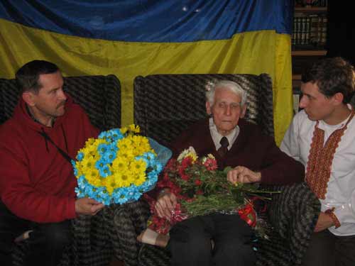 Розширення кола читач╕в «КС» на материков╕й Укра╖н╕ пост╕йно дару╓ нов╕ теми для газети. Скаж╕мо, голова Студентського братства киянин Олег Яценко (про нього я писав у статт╕: «Студентське братство» читатиме «Будьмо!») запропонував по╖хати у село Корол╕вку Борщ╕вського району Терноп╕льсько╖ област╕, аби прив╕тати з 90-р╕ччям проголошення ЗУНР 103-р╕чного Григор╕я Ковпака. Як не послухати Олега – «грозу маяк╕в» ╕ «головного контролера» рос╕йського Чорноморського флоту? Тим б╕льше, що Григор╕й ╤ванович Ковпак з 2005 року ╓ Почесним членом Студентського братства! Вже сам в╕к «студента» примушу╓ ставитись до його персони з великою повагою. ╢дине, що перепитав у Олега: чи ясну голову ма╓ д╕дусь, чи можна йому ставити р╕зн╕ запитання, чи не втомить його велика к╕льк╕сть гостей? Справа в тому, що планувалася ц╕ла делегац╕я з╕ студент╕в ╕ журнал╕ст╕в. Зокрема, збиралися робити передачу прац╕вники каналу «1+1», севастопольського «Бризу», буковинсько╖ газети «Час» тощо. Однак Олег Яценко в╕дпов╕в, що для цього Ковпака найб╕льшою ц╕нн╕стю в св╕т╕ ╓ Укра╖на, його добр╕й пам’ят╕ можуть позаздрити й нин╕шн╕ студенти, а ставлення до гостей Григор╕я ╤вановича таке, як ╕ в кожного нормального учителя, який жив, живе ╕ збира╓ться жити болями свого народу, сво╓╖ кра╖ни… Це був вагомий аргумент, п╕сля якого сумн╕ватися в доц╕льност╕ по╖здки вже не доводилося. …╤ ось наш автобус мчить дорогами Терноп╕льщини. Перший день листопада порадував сухою, теплою погодою, н╕би сам Бог вир╕шив зробити усе в╕д нього залежне, аби старенький учитель отримав додаткову порц╕ю позитивних емоц╕й у пам’ятний для нього День проголошення Зах╕дно-Укра╖нсько╖ Народно╖ Республ╕ки. 90 рок╕в – це ж не жарт! Ск╕льки прожито ╕ ск╕льки передумано за весь цей час! …Не могли не звернути увагу на ориг╕нальний пам’ятник в сел╕ Новос╕лка – дек╕лька ф╕гур борц╕в за волю Укра╖ни на високому пагорб╕. Вони символ╕зують р╕зн╕ етапи боротьби за незалежн╕сть. Зупинилися, вражен╕ хорошою ╕де╓ю ╕ виконанням. Пам’ятник ще б╕льше налаштував нас на зустр╕ч ╕з Учителем, Во╖ном, Патр╕отом. Корол╕вка зв╕дси вже зовс╕м недалеко… ╤ ось при╖хали, розпиту╓мо. Нам показали скромний будинок, в якому живе разом з донькою найстар╕ший св╕док визвольних змагань, активний учасник тих буремних под╕й, чудовий педагог ╕, не виключено, уже найстар╕ший громадянин Укра╖ни… Поляки чи французи, певно, подбали б про те, щоб видатна людина такого рангу мала пристойний котедж на берез╕ моря чи озера… Або ж серед сад╕в, чи на л╕сов╕й галявин╕… Щоб кожен в╕зитер до сивочолого мудреця проникався в╕дпов╕дним настро╓м… Адже настр╕й найпатр╕отичн╕ших громадян держави – це також сво╓р╕дний кап╕тал. Його треба примножувати. Проте, укра╖нц╕ у таких питаннях, зазвичай, мають свою думку. Жити на берез╕ моря чи озера? Для цього ╓ ол╕гархи, рекетири, злод╕╖… А чесна людина, символ нац╕╖, повинна жити у в╕дносн╕й б╕дност╕. ╤накше, який же це символ? Такий вже наш укра╖нський ментал╕тет, ╕ з цим н╕чого не поробиш… * * * Проте, не можна сказати, що д╕дуся в сел╕ не шанують. Прив╕тати Григор╕я ╤вановича з р╕чницею проголошення ЗУНР прийшла зграйка найкращих учн╕в с╕льсько╖ школи. Уяв╕ть соб╕ – це вже онуки його перших учн╕в! Вс╕ присутн╕ 