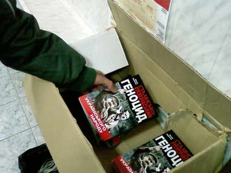 8 листопада група член╕в севастопольського Молод╕жного Союзу «Наша Укра╖на» (МСНУ) виявили на центральному поштовому в╕дд╕ленн╕ м╕ста б╕ля кошика для см╕ття три десятки новеньких укра╖нських книжок. Очевидно, ц╕ книги п╕д назвою “Стал╕нсько-г╕тлер╕вський геноцид укра╖нського народу” були над╕слан╕ з Ки╓ва до яко╖сь орган╕зац╕╖ чи установи м╕ста ╕ були викинут╕ недобросов╕сними ╕ недоброзичливими отримувачами поштово╖ кореспонденц╕╖. “Якщо ц╕ книжки призначалися для м╕ських б╕бл╕отек, а хтось ╕з сп╕вроб╕тник╕в даних установ просто ╖х викинув, то в╕н не ма╓ права працювати в такому м╕сц╕. Молод╕жний Союз «Наша Укра╖на» проведе розсл╕дування ╕ з’ясу╓, куди саме мали над╕йти ц╕ видання”, - прокоментував чергову спробу ╕золяц╕╖ громадян Севастополя в╕д правди про геноцид Микола Шеремет, член ради МСНУ Севастополя. К╕лька людей, як╕ побачили такий скарб, просили дати почитати книгу про злочини комун╕стичного режиму перед укра╖нським народом. ╤нш╕ книги молод╕ патр╕оти передадуть до б╕бл╕отек.
