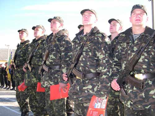 Наприк╕нц╕ листопада в окремому батальйон╕ морсько╖ п╕хоти Центру в╕йськ берегово╖ оборони ВМС ЗС Укра╖ни в╕дбувся урочистий ритуал складання В╕йськово╖ присяги в╕йськовослужбовцями ос╕ннього призову. 62 матроси, як╕ пройшли курс первинно╖ в╕йськово╖ п╕дготовки, склали В╕йськову присягу на в╕рн╕сть укра╖нському народов╕. Серед тих, хто цього дня промовив: «Присягаю н╕коли не зрадити Укра╖нському народов╕», ╓ юнаки ╕ з Прикарпаття. Вони прибули на службу до Феодос╕╖, де стануть основою майбутньо╖ “Прикарпатсько╖ роти” у склад╕ окремого батальйону морсько╖ п╕хоти. Варто наголосити, що под╕бне в╕йськове формування було створено ще в лютому 1919 року за ╕н╕ц╕ативи м╕н╕стра морських справ Укра╖нсько╖ Народно╖ Республ╕ки контр-адм╕рала Михайла Б╕линського. ╤дея в╕дродження п╕дрозд╕лу в сучасному батальйон╕ морсько╖ п╕хоти належить заступнику командувача ВМС ЗС Укра╖ни з берегово╖ оборони - начальнику в╕йськ берегово╖ оборони генерал-майору Олександру Островському. Реал╕зуючи ╕дею в╕дтворення “Прикарпатсько╖ роти”, напередодн╕ ос╕нньо╖ призовно╖ кампан╕╖ в зах╕дному рег╕он╕ Укра╖ни працював вербувальний п╕дрозд╕л Центру в╕йськ берегово╖ оборони ВМС ЗС Укра╖ни. Завдяки д╕яльност╕ вербувальник╕в лави морських п╕хотинц╕в стали поповнюватися юнаками з ╤вано-Франк╕всько╖, В╕нницько╖, Хмельницько╖ та Терноп╕льсько╖ областей. ╤ ось нове поповнення у склад╕ морських п╕хотинц╕в. Новобранц╕в з урочистою под╕╓ю прив╕тали представники м╕сцевих орган╕в влади, ветеранських та громадських орган╕зац╕й, батьки та родич╕. В╕д ╕мен╕ командування Центру ВБО молодих матрос╕в прив╕тав начальник штабу Центру в╕йськ берегово╖ оборони В╕йськово-Морських Сил ЗС Укра╖ни полковник ╢вген Добрин╕н. - Ви ста╓те до вкритих невмирущою славою ряд╕в морських п╕хотинц╕в, як╕ ╓ уособленням в╕дваги, мужност╕, см╕ливост╕ та чест╕. Будьте достойними слави укра╖нсько╖ морсько╖ п╕хоти, - наголосив в╕н. Поздоровляючи молодих матрос╕в, командир окремого батальйону морсько╖ п╕хоти п╕дполковник Серг╕й Стешенко наголосив, що В╕йськова присяга в╕добража╓ безмежну в╕рн╕сть та в╕ддан╕сть во╖н╕в укра╖нському народов╕, готовн╕сть самов╕ддано захищати свою державу. - В╕йськова служба - почесна м╕с╕я для кожного чолов╕ка. На ваших плечах лежить в╕дпов╕дальн╕сть за недоторканн╕сть кордон╕в нашо╖ держави. Склавши В╕йськову присягу, ви п╕дтвердили свою готовн╕сть з╕ збро╓ю в руках захищати нац╕ональний суверен╕тет та незалежн╕сть нашо╖ Батьк╕вщини, - наголосив п╕дполковник Серг╕й Стешенко. Ветеран Велико╖ В╕тчизняно╖ в╕йни, учасник Керченсько-Феодос╕йського десанту кап╕тан 1-го рангу у в╕дставц╕ Георг╕й Десюк побажав молодим матросам усп╕х╕в у бойовому навчанн╕. П╕сля завершення урочистого ритуалу кер╕вник в╕дд╕лу вза╓мод╕╖ з в╕йськовими формуваннями С╕мферопольсько╖ та Кримсько╖ ╓парх╕╖ УПЦ ╕╓рей Димитр╕й Кротков благословив молодих матрос╕в на ратну службу. Того ж дня батьки в╕йськовослужбовц╕в мали можлив╕сть ознайомитись з навчально-матер╕альною базою, казармено-житловим фондом, зразками озбро╓ння та в╕йськово╖ техн╕ки частини, посп╕лкувались з командирами та отримали з перших вуст ╕нформац╕ю про умови та переваги пр