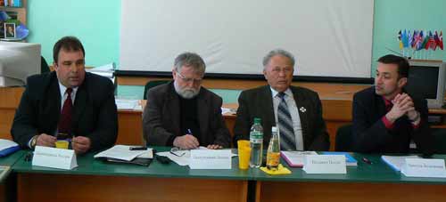 На фото автора (зл╕ва направо): представник МЗС Укра╖ни в АРК Руслан Деримедведь, депутат Верховно╖ Ради АРК Леон╕д Пилунський, голова КНЦПДЖ Петро Вольвач, кер╕вник проекту Володимир Притула.