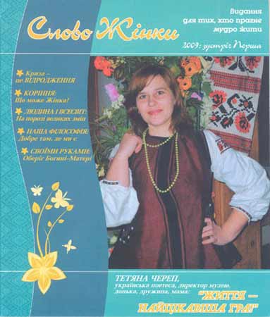 ЗНАЙОМТЕСЯ! ЖУРНАЛ «СЛОВО Ж╤НКИ» Пропону╓мо ваш╕й уваз╕ нове укра╖номовне видання для ж╕нок – «Слово ж╕нки». Наше видання – «не глянцеве», воно адресоване укра╖нським ж╕нкам, як╕ замислюються над майбутн╕м сво╓╖ кра╖ни, народу, над майбутн╕м сво╖х д╕тей, тим ж╕нкам, котрих живо ц╕кавлять питання духовност╕, особистого зростання та в╕дродження кращих нац╕ональних ц╕нностей ╕ традиц╕й. Концепц╕я журналу поляга╓ в тому, що в центр╕ кожного номера – особист╕сть одн╕╓╖ ж╕нки, сучасно╖ укра╖нки: вчительки, дизайнера, л╕каря, б╕знесмена тощо. Ж╕нки, яка в╕дбулася та реал╕зувала себе в житт╕: знайшла сво╓ м╕сце, сво╓ призначення, досягла профес╕йних височин, ма╓ с╕м’ю та д╕тей, наповнена любов’ю, оптим╕змом та силами, готова под╕литися сво╓ю енерг╕╓ю та невеликими житт╓вими секретами з ╕ншими. Також ще одна необх╕дна умова для вибору нашо╖ головно╖ геро╖н╕ – позитивний житт╓вий настр╕й, в╕ра в краще, високий р╕вень духовност╕. З особист╕стю конкретно╖ геро╖н╕ пов’язана також ╕ тема номера – «Краса Ж╕нки: внутр╕шня ╕ зовн╕шня», «Виховання та навчання», «Криза – це В╕дродження» тощо. Журнал ма╓ дек╕лька пост╕йних рубрик: «Де були? Що бачили? (новини); «Людина ╕ Всесв╕т»; «Монологи» (основний матер╕ал номера); «Кор╕ння» (╕сторичн╕ нац╕ональн╕ витоки теми); «Кухонна рада» (ф╕рмов╕ кул╕нарн╕ рецепти головно╖ геро╖н╕); «Здоровеньк╕ будьте!» (прост╕ народн╕ рецепти в╕д ц╕лителя); «Наша ф╕лософ╕я» (погляд ╕ роздуми редакц╕╖ журналу на обрану тему); «Мамина школа» (практичн╕ поради батькам); «Сво╖ми руками» (про вироби, ремесла, як╕ читач може зробити чи вивчити самост╕йно). Вийшло вже три номери журналу в 2008 роц╕, а також перший номер 2009 року. З╕ зворотного зв’язку з читачами ми зрозум╕ли, що обрали правильний напрямок у розвитку видання, оск╕льки отриму╓мо, в основному, позитивн╕, нав╕ть захоплен╕ в╕дгуки. Ось деяк╕ з них: «Идея выпуска такого журнала – великолепна! Я – русская, хотя всю жизнь прожила в Украине (выросла на Западной Украине), и, когда читала ваш журнал, было такое ощущение, что в вашем журнале есть именно то, что сейчас нужно нашей стране – стремление к искренности, душевности, взаимопониманию». Тетяна Серг╕╖вна Шевчук. м. Ки╖в. * * * «У журнал╕ багато душ╕, в╕н зроблений з величезною любов’ю, в ньому багато ц╕кавих ╕дей. Мен╕ подоба╓ться, що журнал по-справжньому ор╕╓нтований на Ж╕нку, на ╖╖ справжн╕ потреби та бажання». Тетяна Слота, л╕кар. м. Бровари, Ки╖всько╖ обл. У 2009 роц╕ ми плану╓мо випустити ш╕сть номер╕в (зараз готу╓мо до друку другий). Концепц╕я журналу така, що його матер╕али не мають «терм╕ну давност╕». Читач╕ ╕ зараз ╕з задоволенням читають перший номер, який вийшов навесн╕ 2008 року. Поштова адреса: 03110, м. Ки╖в, а/с 51. Електронна адреса: annaz.06@mail.ru Телефони: (067) 235-49-35, (044) 569-18-20, (096) 385-56-94, (044) 229-56-07.