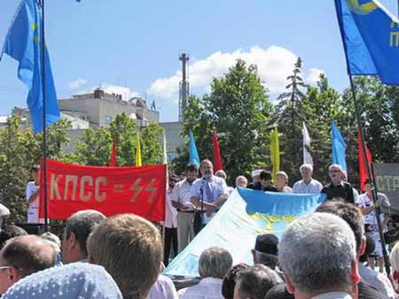 Всекримську акц╕ю — ╕нформац╕йний п╕кет, присвячений Загально╓вропейському Дню пам’ят╕ жертв стал╕н╕зму та нацизму, який орган╕зував Меджл╕с кримськотатарського народу, п╕дтримала Кримська орган╕зац╕я Укра╖нсько╖ Народно╖ парт╕╖. П╕кет в╕дбувся 23 серпня на площ╕ Лен╕на. В ньому взяли участь вс╕ небайдуж╕ до цих страшних под╕й. Люди тримали в руках державн╕ прапори Укра╖ни, кримськотатарського народу, Укра╖нсько╖ Народно╖ парт╕╖, Конгресу Укра╖нських нац╕онал╕ст╕в, Народного Руху Укра╖ни. На багатьох прапорах майор╕ли траурн╕ стр╕чки. У руках учасник╕в були транспаранти з гаслами «КПСС = СС», «НЕТ возрождению тоталитарных режимов!», «Стал╕н╕зм = фашизм». М╕тингуюч╕ закликали укра╖нську владу до безумовного дотримання Укра╖нською державою м╕жнародних правових акт╕в у сфер╕ дотримання прав людини ╕ прав народ╕в, вимагали оф╕ц╕йно в╕дзначати День пам’ят╕ жертв стал╕нського та нацистського режим╕в, та звернулися до ОБС╢, Ради ╢вропи ╕ ╢вропейського Союзу максимально сприяти в╕дновленню прав кримських татар, стосовно яких комун╕стичним режимом СРСР протягом десятил╕ть тривала пол╕тика геноциду. Актив╕сти УНП роздали п╕кетуючим та перехожим газету з╕ статтею «Кв╕тнев╕ недолюдки: Г╕тлер ╕ Лен╕н» з анал╕зом тотал╕тарних пол╕тичних режим╕в: нацистського та комун╕стичного. Ц╕каво, що за спинами п╕кетуючих символ╕чно «стирчав» пам’ятник засновника одного з╕ згаданих режим╕в Володимира Лен╕на. Перед народом виступили кер╕вники та члени пол╕тичних парт╕й та громадських орган╕зац╕й. Люди згадували страшне комун╕стичне минуле: сво╓, батьк╕в чи д╕д╕в. «У семир╕чному в╕ц╕ разом ╕з батьками, засудженими за 58 статтею, я був депортований до ГУЛАГу», — зазначив член С╕мферопольсько╖ м╕сько╖ орган╕зац╕╖ УНП Бенедикт ШКАНДР╤Й, який з г╕ркотою св╕дчить, що все його «щасливе» дитинство пройшло на Васюганських болотах Томсько╖ област╕, де в╕н пров╕в 10 рок╕в. З╕ сльозами пригадав сво╓ дитинство й Леон╕д КУЩ, член УНП, д╕д якого п╕сля революц╕╖ був розкуркулений та депортований з Одесько╖ област╕ до Криму, мати в 1944 р. т╕льки за те, що була за нац╕ональн╕стю гречанкою, комун╕стами вислана на Урал, де жила з д╕тьми в холодному бараку. Постраждала в╕д комун╕стичного режиму й член Джанкойсько╖ районно╖ орган╕зац╕╖ УНП Валентина МАНУ╥ЛОВА. ╥╖ д╕д та бабця, заможн╕ селяни та гарн╕ господар╕, були розкуркулен╕, але знову п╕дняли сво╓ господарство т╕льки за рахунок працьовитост╕. «Колгоспи тод╕ вс╕ ненавид╕ли, н╕хто не хот╕в туди вступати, заганяли насильницькими методами, — зазначила вона. — Бабця розпов╕дала, що забирали всю ╖жу, нав╕ть у горщиках на печ╕, ╕ н╕чого не залишалося, як йти працювати у колгосп, щоб хоч зерно отримати для д╕тей». Вона розпов╕ла, що ╖╖ мати, чолов╕к яко╖ загинув на фронт╕, примушували працювати за трудодн╕ з ранку до ноч╕ на колгоспному пол╕ без вих╕дних, як╕ були вкрай необх╕дн╕, щоб готувати та прати на трьох маленьких д╕тей. «Все це доводилося робити вноч╕ чи на об╕дн╕й перерв╕, потр╕бно╖ для в╕дпочинку коней, на яких орали колгоспну землю, — зазнача╓ ж╕нка. — Про коней дбали, а люди були потр╕бн╕ т╕льки для роботи». «Нац╕онал-соц╕ал╕стичний тотал╕тарний режим Г╕тлера вже засуджений Нюрнберзьким проц