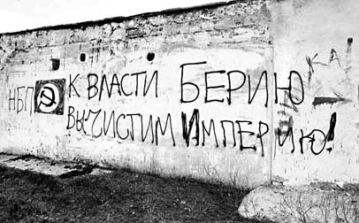 Не знаю, як в Сімферополі, а у Львові заклад, де тримають специфічних пацієнтів, називається Кульпарків, в Москві - Кащенко, в Севастополі - хутір П'ятницького. Але те, що написали пацієнти сімферопольські на стінах гаражів, що тягнуться вздовж залізниці за 700 - 800 м від вокзалу (див. фото) - "Берия - наш рулевой", "Россия - все! Остальное - ничто! НБП", "Буржуев вешать", "К власти Берию - вычистим империю!", - то хуліганство, яке бачать сотні тисяч пасажирів. Тими ж написами "вітають" сімферопольців та приїжджих паркани на вул. Севастопольській. Цікаво інше - чому про це не пише бахарєвська газета чи якась інша, чому до цього байдуже ставляться представники влади, керівники залізниці? Невже серед них немає "буржуєв"? Чому депутат-комуніст Грач не подає запити до відповідних керівників? Мабуть, не проти націонал-більшовиків. Чому це не турбує посадовців, що організовують туризм на півострові? ...Ось такі враження у мене після поїздки до столиці. Прямо скажу: не оптимістичні. Але, може, від того, що зло назване, його можна буде побороти?