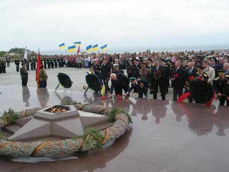 28 жовтня Севастополь разом з ус╕╓ю державою в╕дзначив 65-р╕ччя зв╕льнення Укра╖ни в╕д н╕мецько-фашистських загарбник╕в. З нагоди пам’ятно╖ дати в м╕ст╕ пройшла низка урочистих заход╕в. О 9-╕й годин╕ ранку севастопольськ╕ ветерани разом з кер╕вництвом м╕ста, командуванням ВМС Збройних Сил Укра╖ни, Чорноморського флоту Рос╕йсько╖ Федерац╕╖ та громадськ╕стю поклали кв╕ти до Мемор╕алу геро╖чним захисникам Севастополя 1941-1942 рок╕в. Через годину б╕ля Мемор╕алу Перемоги на мис╕ “Хрустальный” голова м╕сько╖ держадм╕н╕страц╕╖ Серг╕й Куницин в╕дкрив м╕тинг: “65 довгих рок╕в, майже ц╕ла епоха в╕дд╕ляють нас в╕д того св╕тлого дня, коли на опалену в╕йною укра╖нську землю, прийшов довгооч╕куваний мир. Севастополь оборонявся 250 дн╕в ╕ ночей. Нев’януча слава геро╖в в╕йни н╕коли не буде стерта з нашо╖ пам’ят╕”. У сво╖й промов╕ Серг╕й Куницин нагадав про швидкоплинн╕сть часу та людського життя ╕ висловив занепоко╓н╕сть, що з кожним роком ста╓ менше й менше тих, хто подарував свободу сьогодн╕шньому покол╕нню. “Навряд чи знайдеться хоч одна родина, не опалена т╕╓ю в╕йною. Дорогою ц╕ною д╕сталася наша свобода. ╤, ск╕льки б не пройшло рок╕в, людська пам’ять берегтиме приклади геро╖зму, мужност╕, незламно╖ ст╕йкост╕ наших солдат в роки Велико╖ В╕тчизняно╖ в╕йни. Рад╕ймо, що сьогодн╕ так╕ геро╖чн╕ люди ще живуть серед нас. Вони — не просто приклад мужност╕, вони – наш╕ моральн╕ ор╕╓нтири. Низький укл╕н Вам, переможц╕!”. Серг╕й Куницин згадав про «круглий ст╕л» за участ╕ ветеран╕в, що в╕дбувся напередодн╕ свята. Подякував за ╖хн╕ поради, за критику й пооб╕цяв докласти вс╕х зусиль, аби не було забуте жодне з прохань, висловлених п╕д час проведення «круглого столу». В╕н закликав ус╕х пам’ятати подвиги во╖н╕в-визволител╕в. Не менш яскравою була промова голови м╕ськради Валер╕я Саратова: дв╕ г╕лки влади того дня були одностайними. В╕н нагадав присутн╕м про втрати як╕ понесла Укра╖на й, зокрема Севастополь, у роки Друго╖ св╕тово╖ в╕йни, а також про належне ставлення до пам’ятник╕в, як╕ вже ╕снують, й тих, що будуть в╕дкрит╕. Голова м╕ськради вважа╓, що в Укра╖н╕ 2010 р╕к ма╓ бути оголошений роком ветеран╕в. В╕н запевнив, що м╕ськрада готу╓ «Програму покращення соц╕ального захисту ветеран╕в в╕йни» й ветерани сам╕ братимуть участь в ╖╖ опрацюванн╕. «Я ще хочу запевнити солдат-переможц╕в, що Музейний ╕сторико-мемор╕альний комплекс геро╖чним захисникам Севастополя «35-та берегова батарея» буде обов’язково побудований. Це справа нашо╖ чест╕ й сов╕ст╕, й ми ╖╖ викона╓мо», — сказав голова Севастопольсько╖ м╕ськради Валер╕й Саратов. — В╕йськов╕ моряки Укра╖ни схиляють голови перед св╕тлою пам’яттю тих, хто не повернувся з кровопролитних бо╖в, в╕ддавши сво╓ життя за честь ╕ незалежн╕сть нашо╖ В╕тчизни, — наголосив у сво╓му виступ╕ на м╕тингу перший заступник командувача ВМС Збройних Сил Укра╖ни в╕це-адм╕рал В╕ктор Максимов. — ╥хн╓ життя — приклад для насл╕дування нин╕шньому ╕ майбутньому покол╕нням захисник╕в морських рубеж╕в нашо╖ держави. Поздоровити ветеран╕в в╕йни та подарувати ╖м кв╕ти до Мемор╕алу Перемоги прийшли учн╕ шк╕л. Увечер╕ на честь 65-╖ р╕чниц╕ визволення Укра╖ни в Севастопол╕ грим╕в салют, а небо сяяло святковим фе╓рв