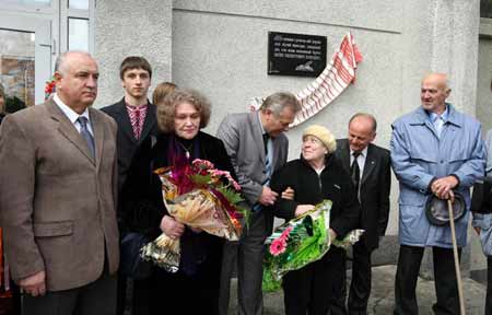 Людмила ТАРАН. На св╕тлин╕: в╕дкриття мемор╕ально╖ дошки. У центр╕ – Л╕на Костенко та Ольга Сенюк.