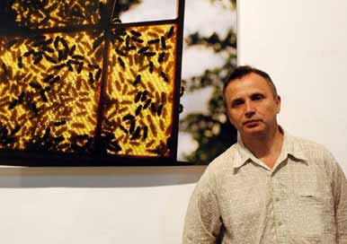 На фото: Микола Журавель б╕ля одн╕╓╖ з роб╕т сво╓╖ «Пас╕ки».