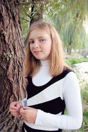 Доброго дня, шановна редакц╕╓ газети «Кримська св╕тлиця»! Мене звуть Ал╕са ЧУПАХ╤НА, мен╕ 12 рок╕в. Я навчаюсь у 7-А клас╕ ЗОШ № 43 м. С╕мферополя. Захоплююся математикою, ф╕зикою, ╕нформатикою. Також займаюсь у Мал╕й академ╕╖ наук, беру уроки акторсько╖ майстерност╕ у театр╕-студ╕╖ «Ми». Коли у мене з’явля╓ться в╕льний в╕д навчання час, залюбки слухаю бард╕вськ╕ п╕сн╕ та складаю ор╕гам╕. * * * У конкурс╕ можуть взяти участь ус╕ представниц╕ прекрасно╖ стат╕. Надсилайте нам ваш╕ фотозн╕мки з короткими розпов╕дями про себе. Найвдал╕ш╕ роботи будуть в╕дзначен╕ спец╕альними призами, а серед десяти кращих кримських красунь, яких визначать сам╕ читач╕, наприк╕нц╕ року буде проведено очний турн╕р на звання «Кримчаночка-2009». Голосувати за претенденток можна за допомогою SMS на номер +38(096) 919-75-85; E-mail: krymchanochka@ukr.net або листами на адресу редакц╕╖ з пом╕ткою «Кримчаночка» на конверт╕. Чим б╕льше голос╕в набере ваша обраниця, тим б╕льше у не╖ шанс╕в стати ф╕нал╕сткою!