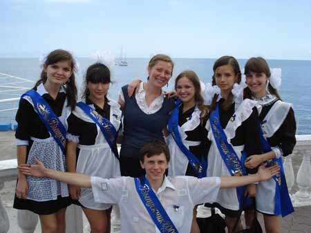 На фото: Настя Феофанова (у центр╕) з випускниками.