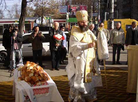 На фото: ╢пископ С╕мферопольський ╕ Кримський Климент чита╓ молитву за невинно загиблими...
