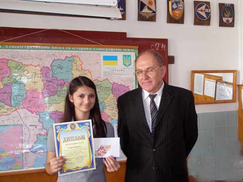 На фото: координатор Громадського ком╕тету «Укра╖нський Севастополь» Микола Владз╕м╕рський з одн╕╓ю ╕з переможниць конкурсу Соф╕╓ю ╤ващенко.