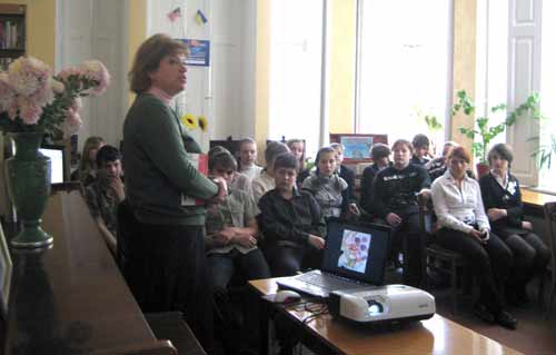 Нещодавно у в╕дд╕л╕ мистецтв «Дитячо╖ б╕бл╕отеки ╕м. В. Н. Орлова» пройшла л╕тературно-художня година «Оч╕ Земл╕, душа Земл╕», присвячений 110-р╕ччю з дня народження Катерини Б╕локур. Учн╕ 8 класу школи №24 м. С╕мферополя познайомилися з творч╕стю художниц╕, ╖╖ життям, д╕зналися про те, як маленька д╕вчина з села Богдан╕вка Пирятинського пов╕ту Полтавсько╖ губерн╕╖ (тепер це Яготинський район Ки╖всько╖ област╕) стала великою художницею. Учн╕ побачили репродукц╕╖ картин Катерини Б╕локур: «Мальви ╕ троянди», «Цар-колос», «Прив╕т, урожаю», «Кв╕ти ввечер╕». Але найб╕льше ╖х вразили картини «Богдан╕вськ╕ яблука» та «Натюрморт з колосками ╕ глечиком». У картин╕ «Богдан╕вськ╕ яблука» учн╕ побачили любов ╕ тугу художниц╕ до р╕дного краю. Яблука на ц╕й картин╕ – як символ В╕тчизни... П╕сля заходу учн╕, п╕д враженням побаченого, вир╕шили ближче познайомитися з творч╕стю Катерини Б╕локур ╕ спробувати себе в рол╕ художника.