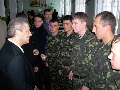 23 лютого у С╕мферопол╕ в парку ╕мен╕ Юр╕я Гагар╕на з нагоди Дня захисника В╕тчизни в╕дбувся урочистий м╕тинг ╕ покладання кв╕т╕в до мемор╕алу «Могили Нев╕домого Солдата». В урочистостях взяли участь перш╕ особи Ради м╕н╕стр╕в та Верховно╖ Ради АР Крим, оф╕цери командування Центру в╕йськ берегово╖ оборони, ветерани Велико╖ В╕тчизняно╖ в╕йни, учасники бойових д╕й у Афган╕стан╕ та в╕йськов╕ п╕дрозд╕ли С╕мферопольського гарн╕зону. П╕сля покладання кв╕т╕в голова Ради м╕н╕стр╕в АРК Василь Джарти в╕дв╕дав окрему бригаду Центру в╕йськ берегово╖ оборони В╕йськово-Морських Сил Збройних Сил Укра╖ни, що дислоку╓ться у селищ╕ Перевальному, де командиром п╕дполковник Серг╕й Стороженко. Василь Георг╕йович ╕з задоволенням познайомився з життям та побутом в╕йськовослужбовц╕в, в╕дв╕дав солдатську казарму, а також казарму пол╕пшеного типу, де проживають в╕йськовослужбовц╕ в╕йськово╖ служби за контрактом. Побував у початков╕й школ╕, де навча╓ться 133 дитини, навчальних корпусах, ознайомився з виставкою стр╕лецько╖ збро╖, в╕дв╕дав парк бойових машин. Протягом вс╕╓╖ зустр╕ч╕ голова уряду сп╕лкувався ╕з солдатами та оф╕церами, розпитуючи про нагальн╕ проблеми, про те, як йде служба, чим займатимуться у цив╕льному житт╕. В╕дв╕дав в╕н ╕ ╖дальню, де ╕з задоволенням пооб╕дав разом ╕з солдатами. За його словами, об╕д був «на р╕вн╕». — Основний показник для мене – це ╖дальня. Якщо солдат буде добре нагодований, то ╕ служитиме в╕н в╕дм╕нно, – зазначив В. Джарти. – Зв╕сно, п╕дрозд╕л, у якому ми зараз перебува╓мо – це зразкова в╕йськова частина. На мо╓ глибоке переконання, у першу чергу такого р╕вня досягнуто завдяки наполеглив╕й робот╕ оф╕церського складу. Це – основа. П╕д час урочисто╖ частини заходу в╕д ╕мен╕ кримського уряду Василь Георг╕йович прив╕тав захисник╕в В╕тчизни з ╖хн╕м святом та вручив сертиф╕кат на комп’ютерне устаткування командиров╕ в╕йськово╖ частини, п╕дполковнику Серг╕ю Стороженку. У в╕дпов╕дь йому подарували шеврон бригади, берет ╕ т╕льник. На запитання журнал╕ст╕в голова кримського уряду розпов╕в, що п╕сля отримання вищо╖ осв╕ти проходив строкову службу у в╕йськов╕й частин╕ ППО у Харков╕. Служба була нелегкою, але ц╕кавою. - Сьогодн╕шн╕й святковий день для мене – пам’ять про мою службу, про товариш╕в, про будн╕. В арм╕ю я п╕шов вже з вищою осв╕тою. Зак╕нчив факультет «Автомоб╕л╕ ╕ автомоб╕льне господарство» Донецького пол╕техн╕чного ╕нституту, пот╕м к╕лька м╕сяц╕в попрацював ╕нженером-механ╕ком, а восени почалася служба у навчальному полку зв’язку. На служб╕ я був вод╕╓м спочатку “З╤Ла-131”, а п╕зн╕ше “УРАЛу-375” Коли став старшим сержантом, заступником командира взводу, зрозум╕в, що начальник не повинен у жодному раз╕ давати соб╕ розслабитися. Якщо ти командир, значить, ма╓ш працювати б╕льше, н╕ж будь-хто з п╕длеглих - лише тод╕ у тебе буде авторитет ╕ моральне право давати вказ╕вки. Я дуже добре пам’ятаю службу в арм╕╖ ╕ в╕дверто з╕знаюся, що т╕льки добр╕ ╕ тепл╕ спогади залишилися про не╖. На запитання, яким ма╓ бути укра╖нське в╕йсько, В. Джарти в╕дпов╕в, що не бачить Укра╖ни без сучасно╖ арм╕╖, а також пооб╕цяв, що буде т╕сно сп╕впрацювати з кер╕вниками в╕йськових в╕домств ╕ установ, як╕ дислокуються
