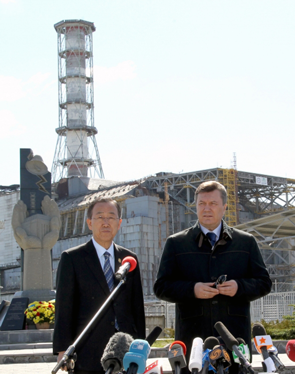 26 кв╕тня - 25-т╕ роковини Чорнобильсько╖ трагед╕╖ 20 кв╕тня Президент Укра╖ни В╕ктор Янукович разом з Генеральним секретарем ООН Бан К╕ Муном та Генеральним директором МАГАТЕ Юк╕а Амано оглянув точний макет стану реактора 4-го блоку ЧАЕС. Генеральний директор ДСП ЧАЕС ╤гор Грамотк╕н пов╕домив, що ще у 1986 роц╕, одразу п╕сля авар╕╖, за короткий терм╕н у 6 м╕сяц╕в на 4-му енергоблоц╕ було створено об’╓кт «Укриття», що максимально використовував ╕снуюч╕ конструкц╕╖. Однак в╕н був нестаб╕льним, оск╕льки одна з╕ ст╕н реактора мала в╕дхилення. Тому 1997-го року було прийнято План д╕й щодо п╕двищення безпеки об’╓кта «Укриття». Загалом було вид╕лено 22 завдання, основну частину яких уже виконано, а ш╕сть знаходяться на виконанн╕ зараз. Зокрема виконано стаб╕л╕зац╕ю об’╓кта, роботи з ремонту покр╕вл╕. Нин╕ в об’╓кт╕ д╕ють системи пилопригн╕чення, до 26 кв╕тня цього року буде введено в д╕ю протипожежну систему та автоматизовану систему управл╕ння. Як пов╕домив ╤. Грамотк╕н, ц╕ роботи дозволили подовжити терм╕н експлуатац╕╖ об’╓кта «Укриття» на 15 рок╕в, ╕ сьогодн╕ в╕н в╕дпов╕да╓ вс╕м нормам безпеки. Однак ц╕ роботи тимчасов╕, тому необх╕дно будувати б╕льш над╕йне укриття для енергоблоку. Саме таким ╓ новий безпечний конфайнмент для об’╓кта «Укриття». В╕ктор Янукович, Бан К╕ Мун та Юк╕а Амано переглянули демонстрац╕йний ф╕льм стосовно план╕в з буд╕вництва нового об’╓кта. Генеральний директор ДСП ЧАЕС зазначив, що нин╕ завершено земельн╕ роботи п╕д конфайнмент, ведеться п╕дготовка фундаменту п╕д арку, яку плану╓ться завершити до к╕нця нин╕шнього року. За словами гендиректора, навесн╕ наступного року плану╓ться розпочати зведення безпосередньо арки ╕ до к╕нця 2015-го завершити реал╕зац╕ю проекту. Висота арки – 108 метр╕в, ширина – 257 м, а довжина – 150 м. Терм╕н ╖╖ служби без додаткового обслуговування склада╓ 100 рок╕в. Як пов╕домив ╤. Грамотк╕н, п╕сля введення в експлуатац╕ю арки, роботи на станц╕╖ не припиняться. Тут розпочнуться заходи з демонтажу нестаб╕льних конструкц╕й 4-го енергоблоку, вилучення рад╕ац╕йно зараженого обладнання та залишк╕в палива для подальшо╖ утил╕зац╕╖. Ус╕ роботи з п╕двищення безпеки об’╓кта «Укриття» зд╕йснюються за рахунок кра╖н-донор╕в. http://www.president.gov.ua ДОНОРСЬК╤ ЧОРНОБИЛЬСЬК╤ М╤ЛЬЙОНИ Кра╖ни-донори вид╕лять на реал╕зац╕ю "чорнобильських проект╕в" понад 400 м╕льйон╕в ╓вро. Про це ╖хн╕ представники кра╖н учасниць заявили 19 кв╕тня п╕д час донорсько╖ конференц╕╖ у Ки╓в╕. Зокрема, за словами президента ╢БРР Томаса М╕рова, банк вид╕лить на реал╕зац╕ю проект╕в 120 м╕льйон╕в ╓вро. "Я хочу заявити, що ╢БРР буде вносити св╕й внесок, а саме 120 млн. ╓вро, але рада директор╕в ще повинна затвердити це на нашому зас╕данн╕ в травн╕", - сказав М╕ров. За його словами, якщо в поточному роц╕ кра╖ни-донори не дадуть на реал╕зац╕ю "чорнобильських проект╕в" б╕льше EUR 480 млн, то ╢БРР попросить Раду директор╕в зб╕льшити суму, що вид╕ля╓ться на 50% - до EUR 180 млн. З╕ свого боку президент ╢вроком╕с╕╖ Жозе Мануель Баррозу заявив, що ╢С вид╕лить на "чорнобильськ╕ програми" 110 м╕льйон╕в ╓вро. "До тепер╕шнього часу ╢вроком╕с╕я надала EUR 470 млн. на чорнобильськ╕ проекти, включаючи соц╕альну п╕дтримку постраждалих територ╕й. EUR 110 млн. додатково проп
