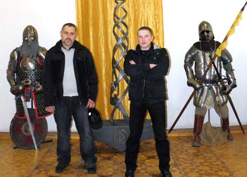 Нещодавно Художн╕й музей м. С╕мферополя на чол╕ з директором Лариною Кудряшовою в╕дкрив сво╖ гостинн╕ двер╕ для виставки кованих роб╕т «Нащадки Сварога» (художн╓ кування металу) Кримського рег╕онального в╕дд╕лення Сп╕лки майстр╕в ковальського мистецтва Укра╖ни (КРВ СМКМУ). С╕мферопольц╕ та гост╕ м╕ста матимуть нагоду доторкнутися до маг╕чного св╕ту металу та вогню включно до 30 кв╕тня. Мешканц╕ кримсько╖ столиц╕ уже звикли до виставок просто неба у сквер╕ кованих ф╕гур, як╕ влаштовують м╕сцев╕ ковал╕ (за допомогою побратим╕в з ╕нших рег╕он╕в Укра╖ни) на день св. Валентина, 8 березня ╕ особливо на День м╕ста. Однак нин╕шня виставка у ст╕нах такого поважного закладу, як Художн╕й музей проводиться вперше. На урочистому в╕дкритт╕ виставки виступили директор музею Ларина Кудряшова ╕ голова КРВ СМКМУ Олег Криворученко. Вони з рад╕стю презентували присутн╕м вироби не т╕льки кримських майстр╕в, але й ковал╕в з Ки╓ва, Донецька, Червонограда (╤вано-Франк╕вська обл.), Краматорська, смт. Рокитне (Ки╖вська обл.), що щиро в╕дгукнулися на ╕н╕ц╕ативу створення ц╕╓╖ виставки ╕ надали сво╖ роботи. Слово мали ╕ гост╕ - ковал╕ з ╕нших рег╕он╕в Укра╖ни - Юр╕й Тембель ╕ Серг╕й Каспрук (голова Ради стар╕йшин Г╕льд╕╖ ковал╕в Донбасу) з Донецька, Серг╕й Ф╕рсов (член КРВ СМКМУ) з Ки╓ва. Незважаючи на р╕зн╕ стил╕ ╖хн╕х роб╕т, майстри були одностайн╕ у тому, що под╕бн╕ мистецьк╕ акц╕╖ дають можлив╕сть майстрам у круговорот╕ життя зупинитися ╕ не т╕льки подивитися на роботи сво╖х колег, а й продемонструвати св╕й талант ус╕м небайдужим до давнього ковальського ремесла. Щодо роб╕т, представлених в експозиц╕╖, то найб╕льшими кованими композиц╕ями ╓ «Сварга», «Фен╕кс», створен╕ колективом ки╖вських майстр╕в п╕д кер╕вництвом Серг╕я Ф╕рсова, ╕ «Молот Тора», створений Юр╕╓м Тембелем ╕ дизайнером Серг╕╓м Гулевським. Ц╕ роботи об’╓дну╓ глибинний символ╕зм, що сяга╓ сво╖ми витоками у слов’янську та скандинавську м╕фолог╕╖. Так, «Сварга», що по╓дну╓ в соб╕ р╕зн╕ матер╕али – зал╕зо, латунь, бронзу, дерево, – це символ сонця, стремл╕ння до Бога. «Фен╕кс» - великий птах (в╕дцентрована ф╕гура, яка до всього ще й руха╓ться), теж ╓ з’╓днанням бронзи, латун╕, зал╕за, зв╕сно, означа╓ символ в╕дродження. «Молот Тора» (Мйольн╕р, Mjolnir, досл╕вно «той, що розбива╓» - з╕ скандинавсько╖ м╕фолог╕╖) символ╕зу╓ не просто бога грому та блискавки, а ще й перемогу над злом. Дуже при╓мно, що дв╕ з цих композиц╕й («Сварга» ╕ «Молот Тора») ╓ подарунком мешканцям нашого м╕ста в╕д ки╖вських ╕ донецьких ковал╕в, плану╓ться що ╖х буде встановлено на День м╕ста у сквер╕ кованих ф╕гур, який за б╕льш н╕ж три роки уже встиг стати окрасою кримсько╖ столиц╕ ╕ був внесений у туристичний маршрут С╕мферополем. Ус╕ експонати виставки, хоч ╕ вир╕знялися р╕зними стилями ╕ напрямками створення, були об’╓днан╕ в ╓дину композиц╕ю – композиц╕ю краси металу, яка раду╓ око сво╓ю величн╕стю, м╕цн╕стю ╕ водночас грац╕озн╕стю, плавн╕стю ╕ нав╕ть тенд╕тн╕стю л╕н╕й. Вражають ╕ мала та середня пластика в метал╕, й ужитков╕ реч╕ (кам╕нн╕ набори, л╕хтар╕, прес-пап’╓, св╕тильники, в╕конн╕ ╜рати), ╕ наст╕нн╕ панно. Окремо подано ╕сторичн╕ сувен╕рн╕ вироби – меч╕, катани, кортики, а також литво (╕стор