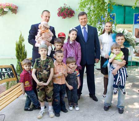 У Микола╓в╕ Президент Укра╖ни В╕ктор Янукович вручив ключ╕ в╕д квартири та ордер багатод╕тн╕й с╕м’╖ Андр╕я та Тетяни Чернишових, як╕ виховують десять д╕тей. Наприк╕нц╕ минулого року В╕ктор Янукович доручив м╕сцев╕й влад╕ у 2011 роц╕ забезпечити житлом родину, яка мешкала в однок╕мнатн╕й квартир╕ житловою площею 14,5 кв. м. Тепер багатод╕тна родина пере╖де до нового помешкання площею 87 кв. м. у новобудов╕, розташован╕й на т╕й сам╕й вулиц╕, що й ╖хня стара квартира. Новий будинок зведено у рамках реал╕зац╕╖ Програми забезпечення житлом окремих категор╕й громадян, як╕ потребують покращення житлових умов. За кошти м╕сцевого осередку Парт╕╖ рег╕он╕в новоселам придбали мебл╕ та побутову техн╕ку. Управл╕ння у справах с╕м’╖ та молод╕ ОДА подарувало родин╕ Чернишових м╕крохвильову п╕ч, посуд тощо. Президент побажав ц╕й родин╕ с╕мейного щастя та подарував д╕тям солодощ╕ й фрукти. З╕ свого боку Андр╕й Чернишов подякував В╕кторов╕ Януковичу за турботу про його родину, за те, що Глава держави знайшов час особисто вручити новоселам ключ╕ в╕д нового помешкання. «Для нас це дуже велика рад╕сть. Ми щаслив╕», - сказав господар, нагадавши, що родина багато рок╕в чекала на вир╕шення сво╖х житлових проблем. Тетяна Чернишова також звернулася до Президента з проханням посприяти у питанн╕ присво╓ння ╖й почесного звання «Мати-геро╖ня». Талановит╕ малюки родини Чернишових подарували В╕кторов╕ Януковичу на згадку альбом з╕ сво╖ми малюнками. У родин╕ Чернишових виховуються 8 хлопчик╕в ╕ 2 д╕вчинки. Наймолодша дитина в родин╕ народилася тор╕к, старша дочка навча╓ться у п’ятому клас╕. Бабуся д╕тей Над╕я ╤ван╕вна Чернишова з 1982 року перебувала на обл╕ку громадян, що потребують покращення житлових умов на умовах загально╖ черги. Власну однок╕мнатну квартиру, де дос╕ проживала багатод╕тна родина, Над╕я ╤ван╕вна отримала в╕д обласного в╕дд╕лу соц╕ального забезпечення.
