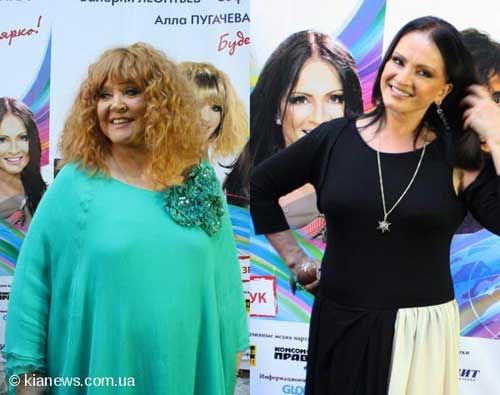 На фото: художн╕й кер╕вник фестивалю Алла Пугачова ╕ голова жур╕ п╕сенного конкурсу Соф╕я Ротару.