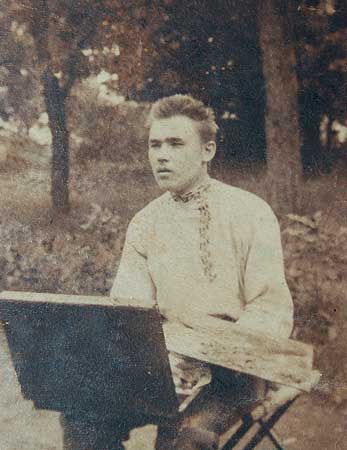 Петро Носко малю╓ з натури в Л╕тньому саду, Петербург