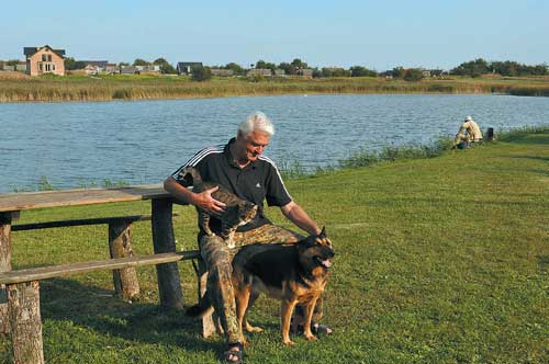 Про рибне господарство Манфреда Ф╕шера я прочитав у одн╕й з м╕сцевих газет. Здивувало те, що далеко немолодий н╕мець вир╕шив зм╕нити пост╕йне м╕сце проживання ╕, покинувши р╕дну Н╕меччину, назавжди поселився в сел╕ Комаров╕ на Сокальщин╕. Поштовхом послужило те, що 55-р╕чний романтик закохався у 35-р╕чну м╕сцеву укра╖нку, яку звали Любою. Пов╕домлявся ще один ц╕кавий факт: тепер подружжя оренду╓ три великих стави загальною площею 36 гектар╕в. Подумалося: н╕мецькою мовою «ф╕шер» якраз ╕ означа╓ «рибалка». Може, Манфред генетично був запрограмований на такий фах? Голос предк╕в – р╕ч серйозна, проти природи н╕чого не вд╕╓ш… Одне слово, хот╕лося глибше досл╕дити ситуац╕ю, тому одного сонячного ранку, закинувши за плеч╕ невеликий рюкзак, автор цих рядк╕в вирушив автобусом на п╕вн╕ч област╕. Заодно прихопив ╕з собою к╕лька номер╕в «Кримсько╖ св╕тлиц╕» для наших давн╕х передплатник╕в з Червонограда та Сосн╕вки. В╕д них же д╕знався, що м╕сцевий люд таки дещо чув про н╕мця-романтика. Нав╕ть розпов╕ли мен╕ ╕стор╕ю про те, як дов╕рливий Манфред спочатку набрав сторож╕в для охорони ставу, але пот╕м передов╕рив цю службу собакам. Адже м╕сцев╕ хлопц╕ виявилися охоронцями радянського «розливу» — могли й для себе коропц╕в наловити (х╕ба ж це д╕ло, коли «чоботар без чоб╕т»?). Тако╖ лог╕ки Манфред не розум╕в, тому й вчинив прагматично ╕ мудро, по-н╕мецьки. Дорога в╕д Червонограда до Комарова пролягала через в╕ков╕чний сосновий б╕р. Щоправда, останн╕м часом тут з’явилося дек╕лька великих вирубок, але загалом цей л╕совий масив — справжн╓ царство природи. У п╕вн╕чн╕й частин╕ його зм╕йкою перер╕за╓ р╕чечка з поетичною назвою Б╕лосток (у Польщ╕ й м╕сто ╓ таке!), яка впада╓ у Зах╕дний Буг. Але перед цим вона ще утворю╓ ц╕лий каскад ставк╕в. Ставки й л╕совий масив поряд – це справжн╕й рай для комар╕в. Поки д╕йшов до господарства Ф╕шер╕в, руки й обличчя були обкусан╕ ними. Недаремно ж ╕ назва села така — Комар╕в! Але й кр╕м них пом╕тив деяку живн╕сть: б╕лочок на соснах, лебед╕в на озер╕… А ще прочитав напис на щит╕: «Колон╕я чапл╕ с╕ро╖». Отже, Манфред за сум╕сництвом виявився ще й справжн╕м охоронцем природи. ╤нший щит попереджав, що ловити рибу, купатися в ставках ╕ розводити багаття на берез╕ забороня╓ться. А так – прогулюватися, в╕дпочивати можна, хоча й з деякими обмеженнями, до 22-00. Одним словом, шматочок ╢вропи, т╕льки трохи б╕льше свободи. * * * В тому, що собаки можуть нести службу не г╕рше в╕д сторож╕в, я згодом переконався. Вони не мали твердого нам╕ру мене покусати, але змусили чекати на господар╕в. Точн╕ше, на господарку, бо, як з’ясувалося, Манфред кудись ненадовго по╖хав. Проте в╕вчарки у Манфреда виявилися дуже добрими, принаймн╕ вони приятелюють з десятком котик╕в… А для котячого царства тут взагал╕ рай – ст╕льки риби! Ось т╕льки пан╕ Люба в╕дразу попередила — ╖╖ м╕сце сьогодн╕ б╕ля плити, бо ось-ось мають при╖хати гост╕ з Н╕меччини. Однак погодилася трохи розпов╕сти про захоплення чолов╕ка. — Жити на природ╕, на берез╕ великого ставу – це була давня мр╕я Манфреда. Але щоб зробити штучний став треба не лише вирити котлован, але й чекати ще десять рок╕в, поки там бодай жаби з’являться… Та й грош╕ для цього потр╕бн╕ чимал╕. Одним словом, у Н╕меччин╕ це дуж