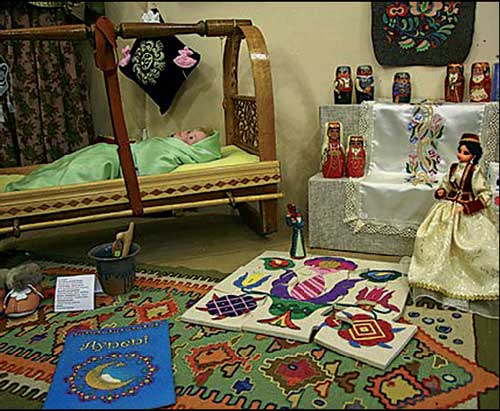 У С╕мферопол╕ в «Етнограф╕чному музе╖» в╕дкрилася виставка декоративно-прикладного мистецтва кримських татар «Золота колиска» («Алтин Бешик»). Мета виставки — продемонструвати самобутн╕сть, красу ╕ багатство р╕зних вид╕в декоративно-прикладного мистецтва кримських татар ╕ показати ╖хн╓ функц╕ональне призначення. ╤ не випадково виставка назива╓ться «Золота колиска». Вона символ╕зу╓ в╕дродження, духовн╕сть, зв’язок покол╕нь ╕ силу народних традиц╕й. Це — тал╕сман Криму. Представлен╕ на виставц╕ площинн╕ та об’╓мн╕ декоративн╕ композиц╕╖ в нац╕ональному колорит╕ з р╕зного матер╕алу в р╕зн╕й техн╕ц╕ виконання — це вишивка, керам╕ка, р╕зьблення по дереву, килими, художня чеканка, розпис, ╕грашки, ляльки в нац╕ональному одяз╕, костюми з етн╕чними мотивами та ╕н. дають можлив╕сть показати деяк╕ аспекти матер╕ально╖ та духовно╖ культури кримських татар, де перегукуються традиц╕╖ та сучасн╕ тенденц╕╖. Разом з виробами профес╕йних майстр╕в ╕ художник╕в в╕дв╕дувач╕ ознайомляться ╕ з роботами майстр╕в-аматор╕в. У кожного св╕й жанр ╕ напрямок, але об’╓дну╓ ╖х прагнення спиратися у сво╖й творчост╕ на народн╕ традиц╕йн╕ мотиви. Виготовлен╕ ╖хн╕ми руками твор╕ння виконують не т╕льки утил╕тарно-практичн╕, а й естетичн╕ функц╕╖. На ц╕й виставц╕ представлено б╕льше ста р╕зноман╕тних вироб╕в, виконаних у нац╕ональному стил╕. Серед експонат╕в роботи: творчого об’╓днання «Чатир Даг» (проект «Кримський стиль», кер. — заслужений художник Укра╖ни Мамут Чурлу); групи «Ельчебер» (кер. — Рустем Ск╕б╕н); молод╕жно╖ громадсько╖ орган╕зац╕╖ «Арслан» м. Бахчисарай (кер. — Абла╓ва ╤нара); творчого об’╓днання «Джанкисет» Красногвард╕йського району; Рег╕онального центру народних ремесел «Орьнек» (кер. — Ед╕╓ Шаменова); громадсько╖ орган╕зац╕╖ «Ж╕ночий клуб Ненкеджан» (кер. — Зера Бек╕рова); творчого об’╓днання «Марама» м. Бахчисарай (кер. — Айше Османова); студент╕в Кримського ╕нженерно-педагог╕чного ун╕верситету (кер. — Акчур╕на Н., Дорошевич М.); заслуженого художника Криму Асана Гал╕мова, заслуженого художника Криму Зареми Трас╕ново╖, художника Ал╕ Бек╕рова; майстринь-вишивальниць — Ельв╕ри Османово╖, Зареми Мустафа╓во╖, Хат╕дже Юнусово╖, Л╕л╕ Ка╖шево╖, Марини Клименко; р╕зьбяр╕в по дереву: Ем╕на Таймазова, Рустема Максудова; вироби Зульф╕╖ Се╖тасаново╖ (м. Б╕лог╕рськ), Веляде Аблязово╖ (м. Феодос╕я), Валентини Шит╕ково╖ (м. С╕мферополь), Тамари Ключк╕но╖, Олени Га╓всько╖ (м. С╕мферополь), етн╕чн╕ костюми Майре Люманово╖, Венери Курма╓во╖, Айше Османово╖, Хал╕де Челенг╕рово╖, Гульнари Кер╕мово╖. Виставка триватиме до 12 грудня 2011 року.
