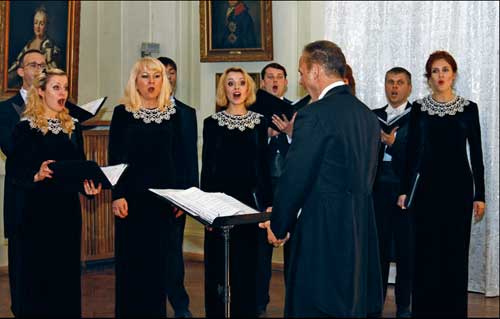 Друге грудня. У концертному зал╕ Художнього музею — повно люду, ╕ моя увага фокусу╓ться на обличч╕ одн╕╓╖ з хористок, яку не застять н╕чи╖ спини та голови. ╥╖ величезн╕ оч╕ струмують небесне св╕тло. Так╕ бачила лише колись у черниц╕ в Москв╕, яку забрали в с╕м’ю на л╕кування. Ми вс╕, студенти-квартиранти ╕ господар╕, говорили тод╕ про ╖╖ оч╕. Хочеться сфотографувати сп╕вачку ╕ пом╕стити фото на половину газетно╖ шпальти. Зда╓ться, вона може одним сво╖м виглядом розпов╕сти про цей хор усе найголовн╕ше… Але майже поруч — ще одна з такими самими дивовижними очима. А та, що пом╕ж ними, — рок╕в на 15-20 старша, ╕ життя вже пригасило високе св╕тло. А можливо, не просто життя, а довг╕ роки економ╕чно╖ скрути, бо це лише для нас, у зал╕, артисти — обранц╕ дол╕, а для тих, в╕д кого ця доля залежить, вони, швидше, — просто головний б╕ль. Бо чомусь же на 20-р╕чний юв╕лейний концерт камерного хору «Тавр╕йський благов╕ст» Кримсько╖ державно╖ ф╕лармон╕╖ не прийшов н╕хто ╕з проф╕льного м╕н╕стерства, ╕ це важко було не пом╕тити. А я так спод╕валася побачити тут заступницю м╕н╕стра культури Арину Новосельську — вона ж бо теж сердечна ╕ в╕дкрита ╕, можливо, добре слово в╕д не╖ цього дня поклало б край т╕й напруз╕, яка гасить полум’ян╕ оч╕ сп╕вак╕в. А ще б вона почула нестримн╕ вигуки, а то й шеп╕т поруч: «Молодц╕!», «Чудово», «Чар╕вно!». ╤, звичайно ж, оф╕ц╕йн╕ виступи друз╕в та прихильник╕в цього хору, серед яких – свят╕ отц╕. Ось промовля╓ прото╕╓рей Олександр в╕д свого ╕мен╕ та ╕мен╕ Кримського владики УПЦ МП Лазаря: — Вже 20 рок╕в ви несете духовну красу православного п╕сносп╕ву, несете людям духовну культуру, попри те, що все навкруги руйну╓ться ╕ нищиться, як зауважив владика, доносите до нас духовну красу звуку. В Криму ви були першими, такими лишилися й дос╕. Та ╕ у кра╖нах сп╕вдружност╕ таких не багато, пригадую лише один под╕бний колектив, що при╖жджав до нас у 80-т╕ роки з Москви. Пиша╓мося, що ми, кримчани, ╓ вашими сучасниками. Не пошкодувавши часу, при╖хав на концерт ╕ о. Марк ╕з Судацького району. — Ви п╕днесли на неймов╕рний р╕вень хорове духовне мистецтво. Це — богослов’я у звуках, — заявив в╕н, зауваживши, що, як н╕хто, здатен оц╕нити ╖хн╕ таланти, бо сам теж був музикантом. – У сво╖й творчост╕ ви – богопод╕бн╕, — завершив виступ святий отець, подарувавши сп╕вакам ╕кону Благов╕сника. А в╕д о. Олександра подарунком став образ св. Гур╕я. Прив╕тати свого колишнього учня с╕мферопольсько╖ музично╖ школи № 1, а нин╕ – диригента, засновника ╕ кер╕вника хору «Кримський благов╕ст», заслуженого д╕яча культури АРК Володимира Н╕коленка прийшов ╕ 88-р╕чний Дмитро Петрович Малий. В╕н – ветеран в╕йни, був дв╕ч╕ поранений, ус╕ груди — в нагородах (ск╕льки ╖х залишилося вже, отаких справжн╕х ветеран╕в?!), а ось не зм╕г поставитися байдуже до свята свого вихованця. Вихованця ╕ кер╕вника водночас, бо сьогодн╕ Володимир Михайлович очолю╓ С╕мферопольську музичну сп╕лку, а Дмитро Петрович ╓ його заступником. Як фах╕вець г╕сть зауважив, що найскладн╕ше керувати хором, який сп╕ва╓ акапело. Бо тут нема╓ багатоголосся, яке створюють музичн╕ ╕нструменти. А ось я, необ╕знана, дивуюся саме цьому багатоголоссю. ╤ нав╕ть пробую заплющити оч╕, як це робить сус╕дка по кр╕слу (точн╕ше, ст