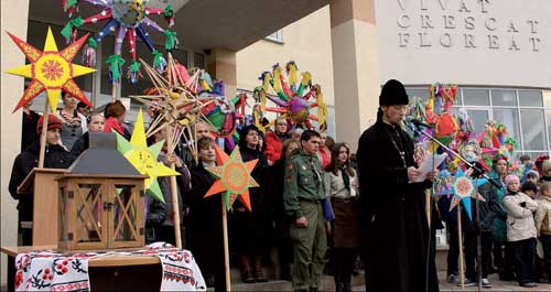 Христос народився, Бог воплотився, ангели сп╕вають… До Р╕здва ще далеко, але в Укра╖нськ╕й школ╕-г╕мназ╕╖ С╕мферополя нин╕ свято. У п’ятницю, 16 грудня, м╕сцев╕ пластуни привезли сюди В╕фле╓мський вогонь. На честь ц╕╓╖ под╕╖ над г╕мназ╕╓ю п╕дняли велику Р╕здвяну з╕рку, зроблену с╕мферопольськими школярами разом ╕з льв╕вськими майстрами, як╕ спец╕ально при╖жджали до Криму под╕литися сво╖м ум╕нням. З В╕фле╓ма, де за б╕бл╕йними переказами народився ╤сус Христос, до В╕дня його доставили австр╕йськ╕ скаути, а зв╕дти в Укра╖ну привезли укра╖нськ╕ пластуни. Серед них був ╕ с╕мферополець Микола Яриновський, який очолю╓ кримську округу ╕ створив осередок «Пласту» в Укра╖нськ╕й г╕мназ╕╖. В╕н розпов╕да╓, що дуже посп╕шав до С╕мферополя привезти Святий вогонь, бо пот╕м з друзями везе його в кра╖ни Балт╕╖, щоб там передати представникам укра╖нсько╖ д╕аспори. За його словами, цей вогонь ╓ символом ╓дност╕ укра╖нського народу. Тепер кожен кримчанин теж може запалити ╕ соб╕ В╕фле╓мський вогонь, каже пластун Микола Яриновський. Директор Укра╖нсько╖ школи-г╕мназ╕╖ Наталя Руденко рад╕╓, що не лише В╕фле╓мський вогонь зав╕тав до Криму. Вперше на цьогор╕чне Р╕здво в С╕мферопол╕ в╕дбудеться ╕н╕ц╕йований г╕мназистами парад зв╕здар╕в. За словами директора г╕мназ╕╖, тор╕к у газет╕ «День» вона прочитала про такий святковий зах╕д у Львов╕. «Ми ц╕лий р╕к шукали людей, як╕ б могли навчити робити Р╕здвян╕ з╕рки. Знайшли ╖х у Львов╕, запросили до г╕мназ╕╖. Тут ц╕ майстри працювали з нашими д╕тьми та вчителями два тижн╕. Таки навчили нас робити ╕ Р╕здвяний вертеп, ╕ Р╕здвян╕ з╕рки», — розпов╕ла Наталя Руденко. З нагоди прибуття В╕фле╓мського вогню найб╕льшу з майже двох десятк╕в Р╕здвяних з╕рок, зроблених с╕мферопольськими школярами, встановили на висок╕й г╕мназ╕йн╕й веж╕. Учениця 11 класу г╕мназ╕╖ Надя Бразнець розпов╕да╓, що г╕мназисти ╕з задоволенням брали участь у створенн╕ цих з╕рок, ╕ поки тут працювали льв╕вськ╕ майстри, в г╕мназ╕╖ нав╕ть п╕двищилася усп╕шн╕сть. Тепер школяр╕ з нетерп╕нням чекають 7 с╕чня, коли збираються провести перший Парад зв╕здар╕в. Надя Бразнець спод╕ва╓ться, що це стане ╕ с╕мферопольською традиц╕╓ю.