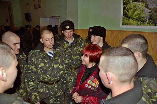 Кер╕вник громадських орган╕зац╕й под╕лилася з солдатами житт╓вими ╕стор╕ями з в╕йськово╖ служби ╖хн╕х однол╕тк╕в. Розпов╕ла про необачн╕ вчинки, як╕ ╕нколи псують молоде життя. Продиктувала св╕й моб╕льний телефон, ╕ закликала пережити ус╕ можлив╕ негаразди разом. Вона пооб╕цяла сприяти у налагодженн╕ в╕дкритого д╕алогу м╕ж матросами, оф╕церським складом, батьками ╕ закликала завжди писати додому листи: