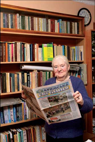 — Справа в тому, що по материнськ╕й л╕н╕╖ ус╕ мо╖ родич╕ були укра╖нцями. А пот╕м мен╕ до рук потрапила одна книжка про Ки╖в. Назви ╖╖ я вже не пам’ятаю, але там описувалася ╕стор╕я нашо╖ столиц╕ в╕д перших княз╕в Аскольда ╕ Д╕ра. Та й взагал╕ я дуже багато читала ╕ читаю й тепер. Бабуся навчила мене в╕дпов╕дально ставитися до читання. Н╕коли не вивчаючи укра╖нсько╖, я вже в дитинств╕ добре знала Шевченк╕в «Кобзар», бо у бабус╕ було видання приблизно 1918 року. Спочатку я читала книги з народознавства, але згодом мен╕ б╕льше подобались ╕сторичн╕ книги та класика. Зараз моя домашня б╕бл╕отека наповнена лише книгами укра╖нською мовою. У б╕бл╕отеку, де я працюю, я передплатила ус╕ укра╖нськ╕ газети ╕, звичайно ж, «Кримську св╕тлицю».