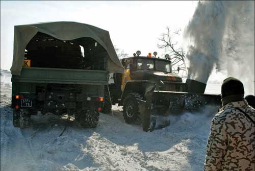 Вдруге за останн╕й зимовий м╕сяць аномальн╕ лют╕ морози з ураганними, до 30 метр╕в на секунду, в╕трами обрушились на сонячний п╕востр╕в надвеч╕р 7 лютого. Буквально за л╕чен╕ години на в╕дкритих д╕лянках автотрас (до слова, саме там, де варварськи вирубан╕ захисн╕ л╕сосмуги) на п╕д’╖зд╕ до С╕мферополя виросли сн╕гов╕ замети ледве не у людський зр╕ст. Вони наглухо заблокували весь транспорт, що у той час перебував у дороз╕, — в╕д легковик╕в ╕ рейсових автобус╕в до потужних вантаж╕вок. Загалом близько п╕втисяч╕ одиниць техн╕ки з вод╕ями ╕ пасажирами опинились у сн╕говому полон╕. Найб╕льш╕ ж затори утворилися на трасах С╕мферополь-╢впатор╕я ╕ С╕мферополь-Армянськ. Саме сюди за р╕шенням оперативного штабу при Рад╕ м╕н╕стр╕в АРК ╕ була спрямована наявна рятувальна техн╕ка — шнекоротори м╕сцевого управл╕ння МНС, аеропорту, грейдери автодору, а також автомоб╕л╕ п╕двищено╖ прох╕дност╕ М╕ноборони ╕ нав╕ть бронетранспортери (спецп╕дрозд╕лу «Беркут» МВС ╕ Центру в╕йськ берегово╖ оборони ВМС ЗС Укра╖ни). Зокрема, бригад╕ в╕йськовик╕в п╕д кер╕вництвом заступника командувача Центру в╕йськ берегово╖ оборони полковника Серг╕я Пас╕чника «нар╕зали» д╕лянки автотраси в район╕ с╕л Низинне ╕ Трактове. Туди за наказом командувача ВМС ЗС Укра╖ни адм╕рала В╕ктора Максимова береговики прибули близько оп╕вноч╕ 7 лютого. — Перед нами було поставлено завдання, — розпов╕в полковник Серг╕й Пас╕чник, — евакуювати вс╕х людей, що залишилися в автобусах ╕ авт╕вках (температура вноч╕ опустилась до м╕нус 20 градус╕в) до найближчого селища Гвард╕йське. Але вже на м╕сц╕ довелось дещо скорегувати завдання, бо спочатку до людей потр╕бно було д╕статись — заважали заблокован╕ фури. Тож ми сво╖ми КрАЗами (вод╕╖ — прапорщик Серг╕й Нижник ╕ сержант служби за контрактом Денис Реу з 406-о╖ С╕мферопольсько╖ окремо╖ берегово╖ артилер╕йсько╖ групи) спочатку ╖х в╕дбуксирували, щоб дал╕ вже безпосередньо приступити до евакуац╕╖. Деяк╕ машини довелось нав╕ть розкопувати. Безупинно працювали всю н╕ч. До реч╕, бронетранспортери у ц╕й ситуац╕╖ виявились безпорадними — вони с╕дали «черевом» на кучугури ╕ лише гребли колесами на м╕сц╕. Ми застосували сво╓р╕дне ноу-хау: ч╕пляли на буксир в╕дразу дв╕-три машини, щоб прискорити процес. Також надавали техн╕чну допомогу власникам легковик╕в, а саме — п╕дживлювали ╖хн╕ акумулятори ╕ заправляли пов╕трян╕ балони. Варто також додати, що за оперативн╕сть ╕ злагоджен╕сть в╕йськовикам подякував голова Ради м╕н╕стр╕в АРК Анатол╕й Могильов, який з ╕ншими кер╕вниками автоном╕╖ побував на розблокован╕й д╕лянц╕ дороги С╕мферополь-Красноперекопськ неподал╕к Трактового. Але на цьому «визвольна» м╕с╕я в╕йськовик╕в на заметених дорогах п╕вострова не припинилась. 8 лютого чотири «Урали» з вод╕ями-матросами 36-о╖ окремо╖ бригади берегово╖ оборони з селища Перевального та ще два КрАЗи вищезгадано╖ 406-о╖ артгрупи Укра╖ни були спрямован╕ у найб╕льш постраждал╕ в╕д шквальних в╕тр╕в Сакський, С╕мферопольський, Чорноморський ╕ Джанкойський райони. Там через обриви на л╕н╕ях електропередач без св╕тла опинились аж 139 населених пункт╕в. Д╕статися авар╕йних д╕лянок ремонтн╕ бригади «Крименерго» могли лише на в╕йськових автомоб╕ля