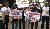 Людей з плакатами, як╕ протестували проти репрес╕й в окупованому Криму, рос╕йськ╕ силовики...